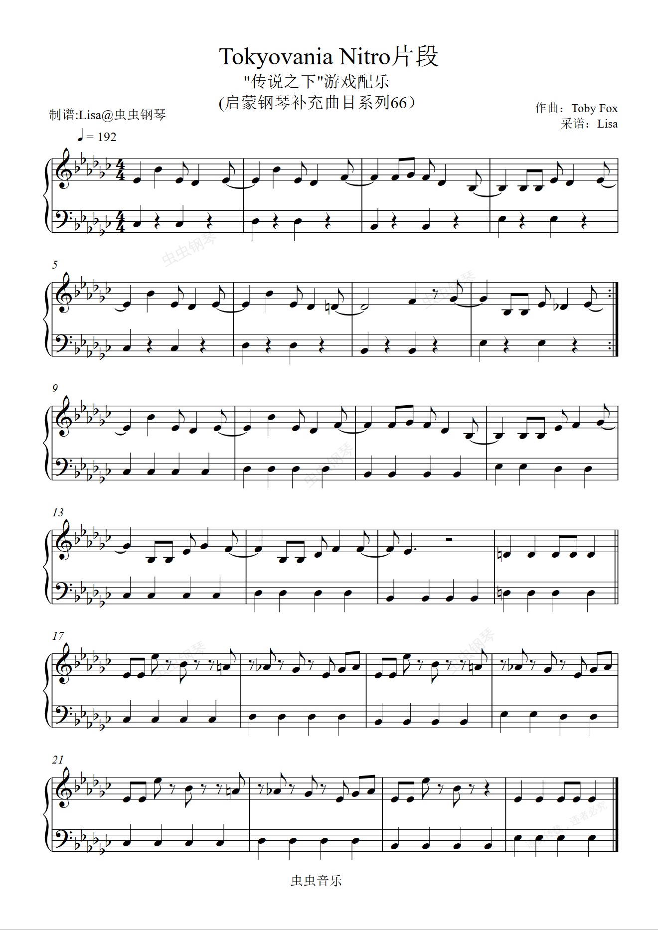 钢琴谱:TOKYOVANIA(传说之下游戏配乐,小汤4水平)