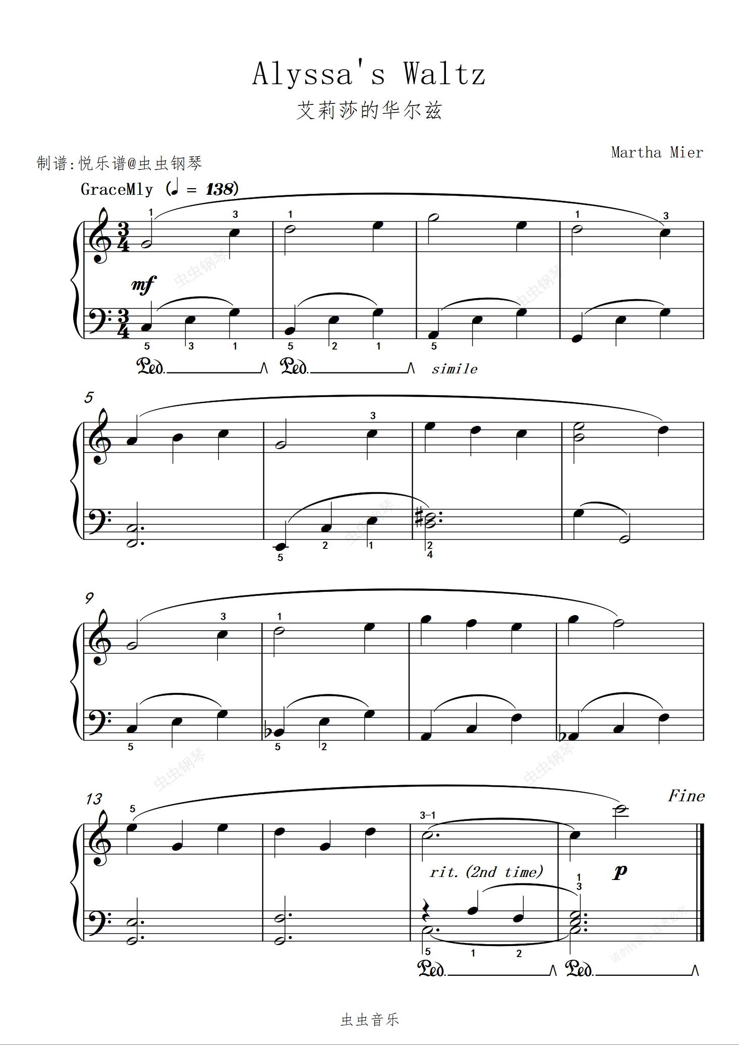 钢琴谱:艾莉莎的华尔兹//Alyssa's Waltz【唯美】