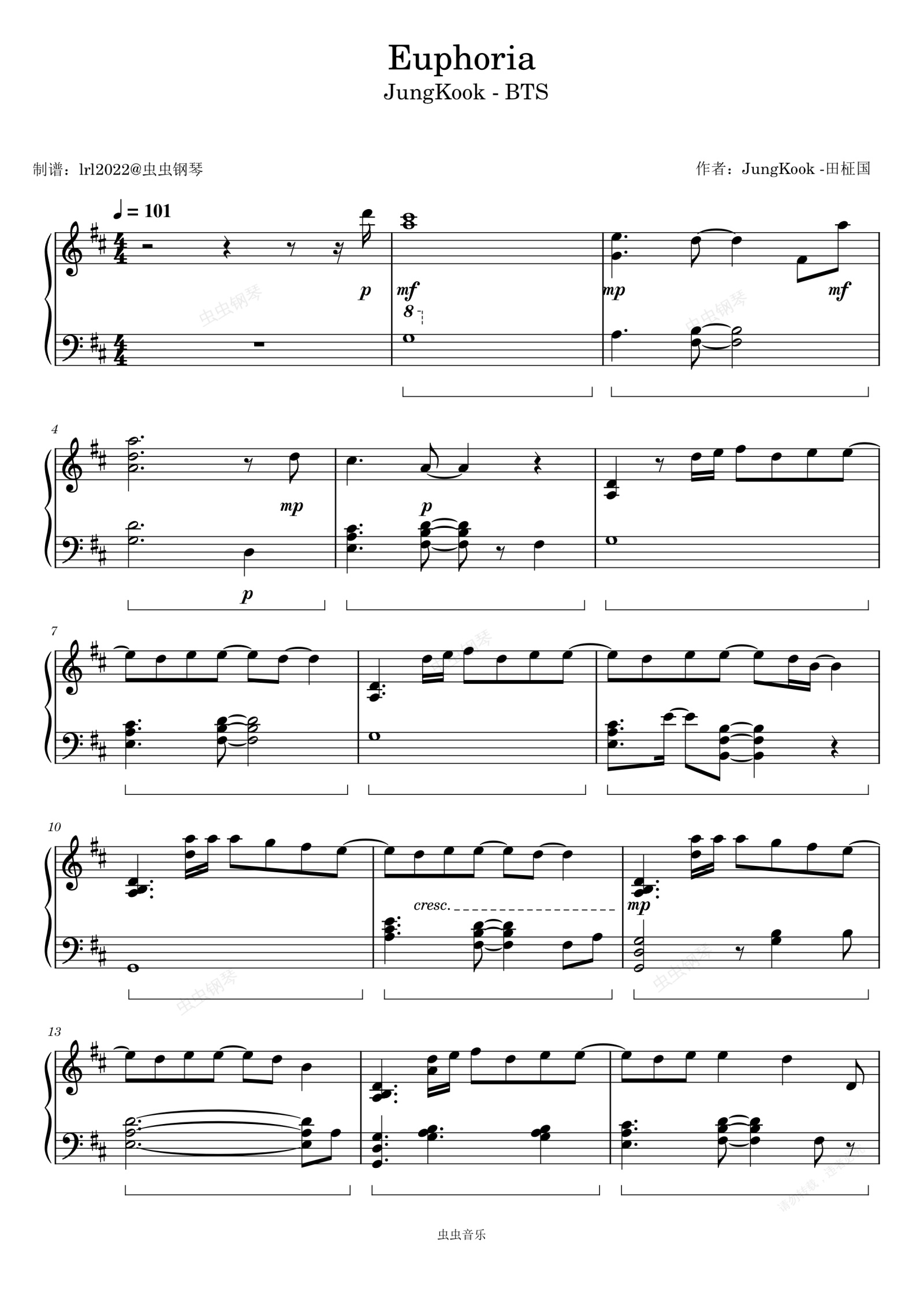 钢琴谱:Euphoria - JungKook -田柾国 - 钢琴独奏