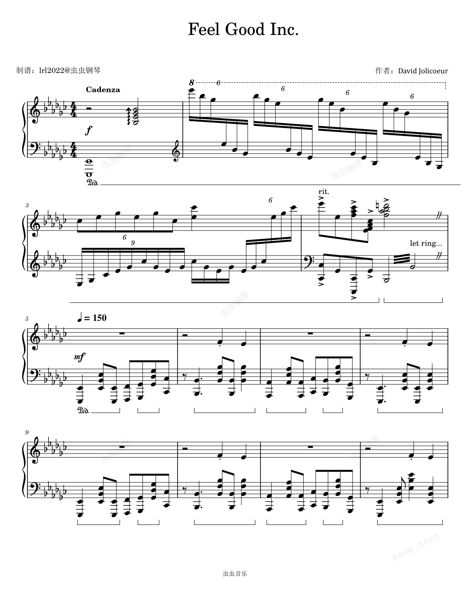 钢琴谱:Feel Good Inc. - Gorillaz & De La Soul - 钢琴独奏