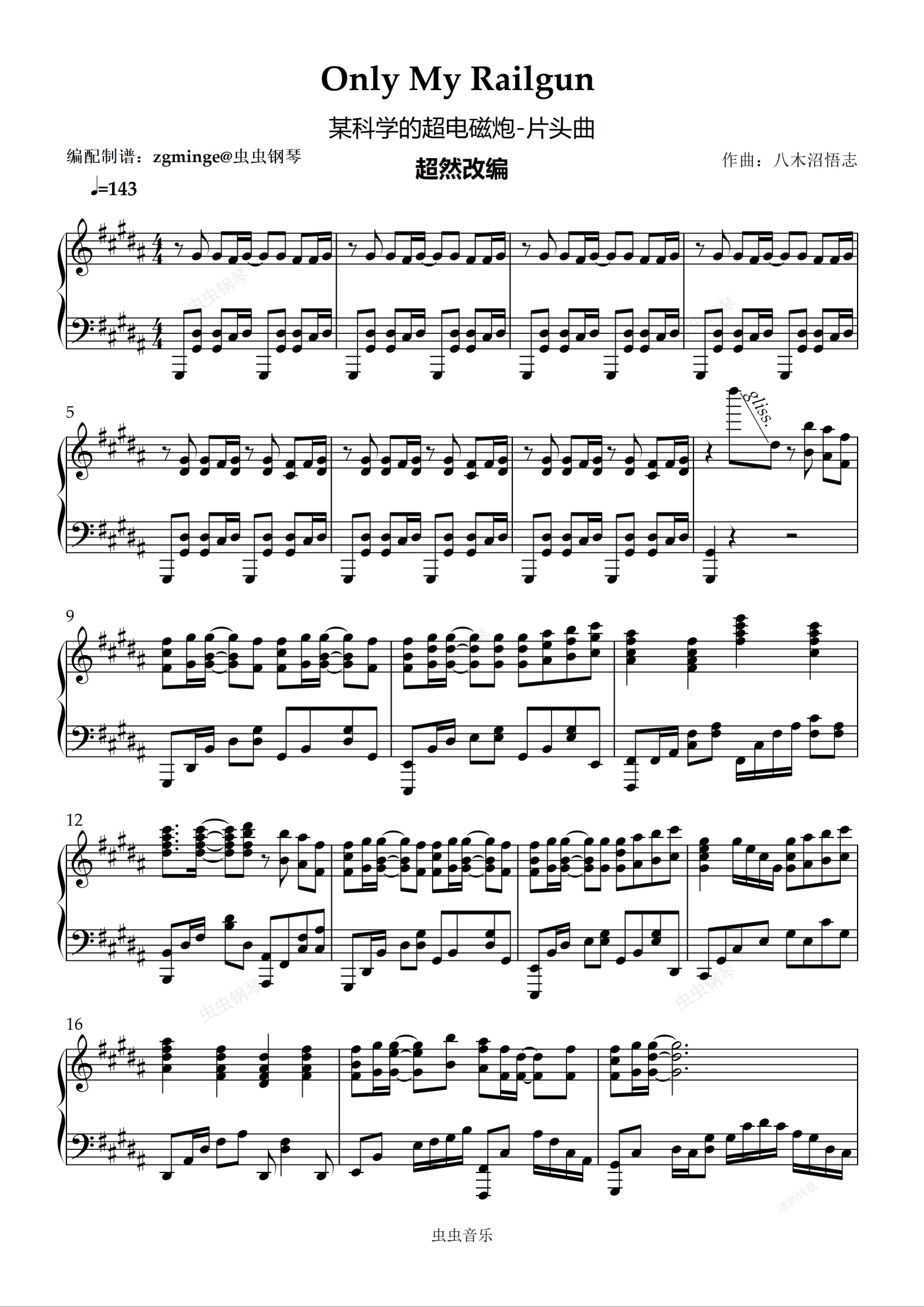 钢琴谱:Only My Railgun 超然版附带原版伴奏还原