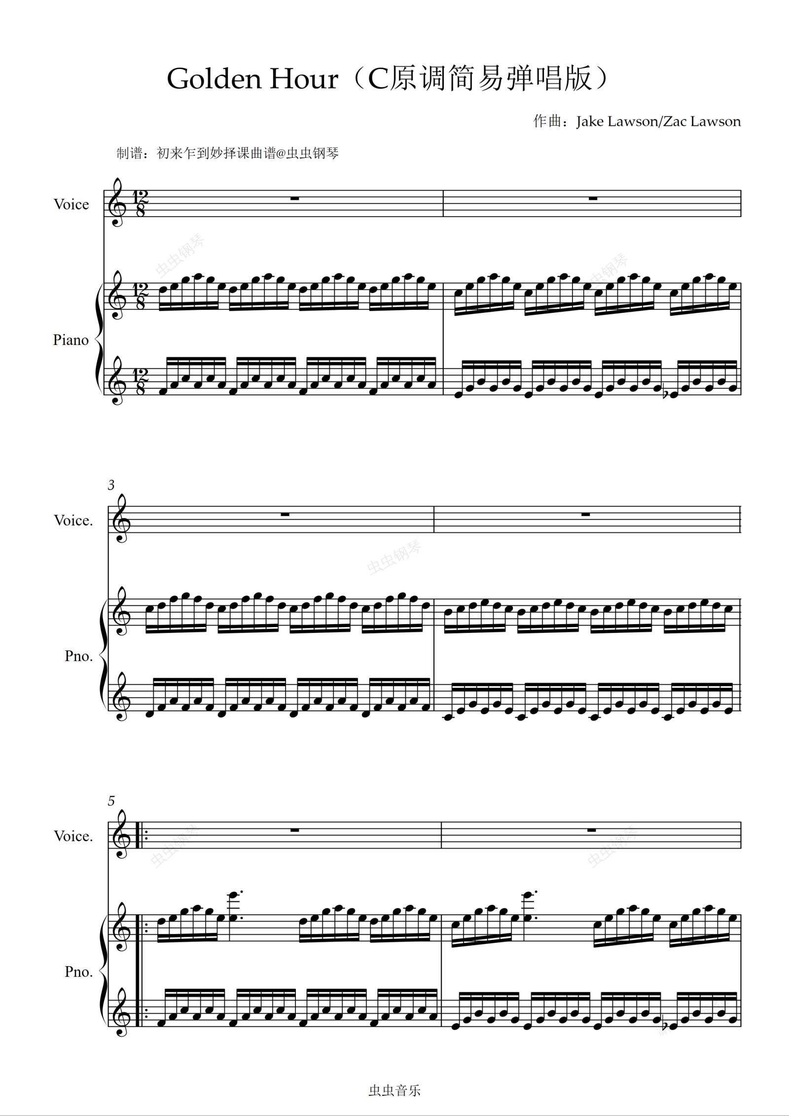 钢琴谱:C调《Golden Hour》弹唱谱