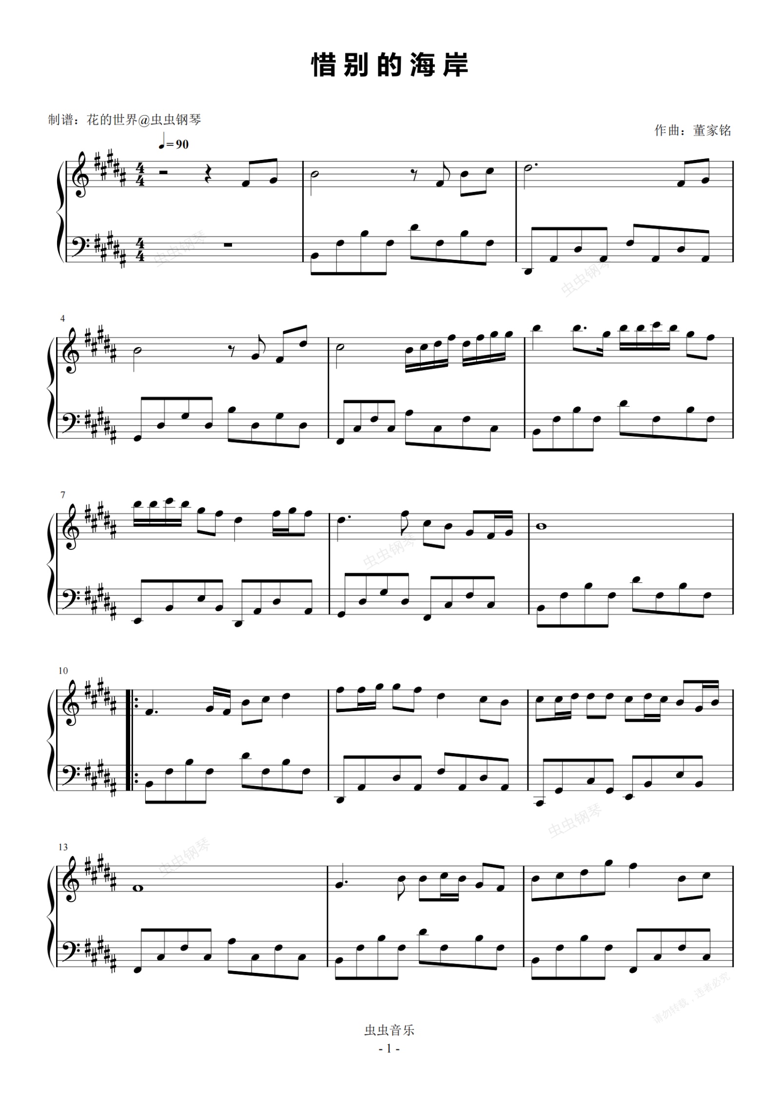 钢琴谱:惜别的海岸 原调简易版 龙飘飘 流行经典