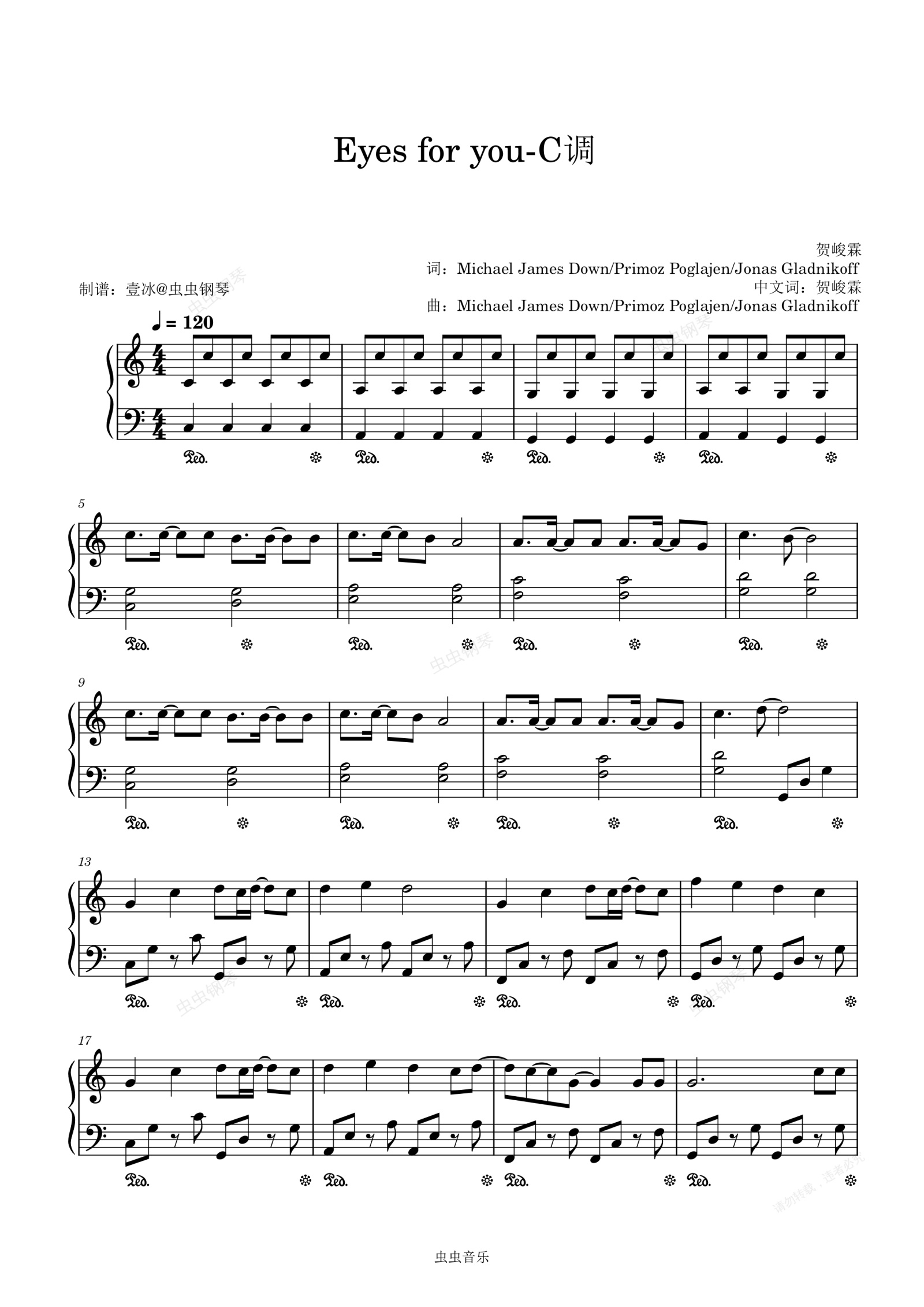 钢琴谱:Eyes For You//贺峻霖 新歌-C调