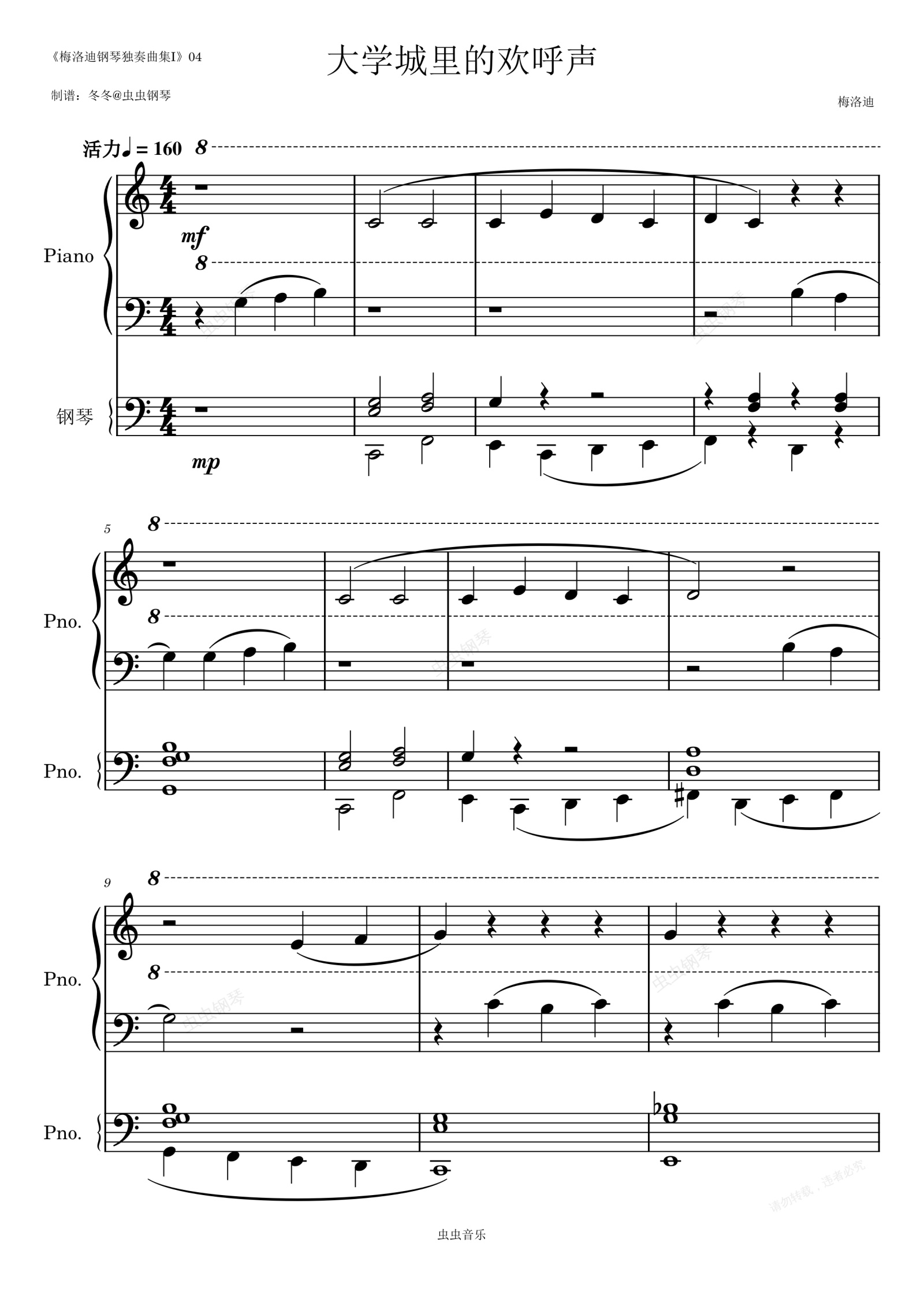钢琴谱:大学城里的欢呼声(四手联弹)