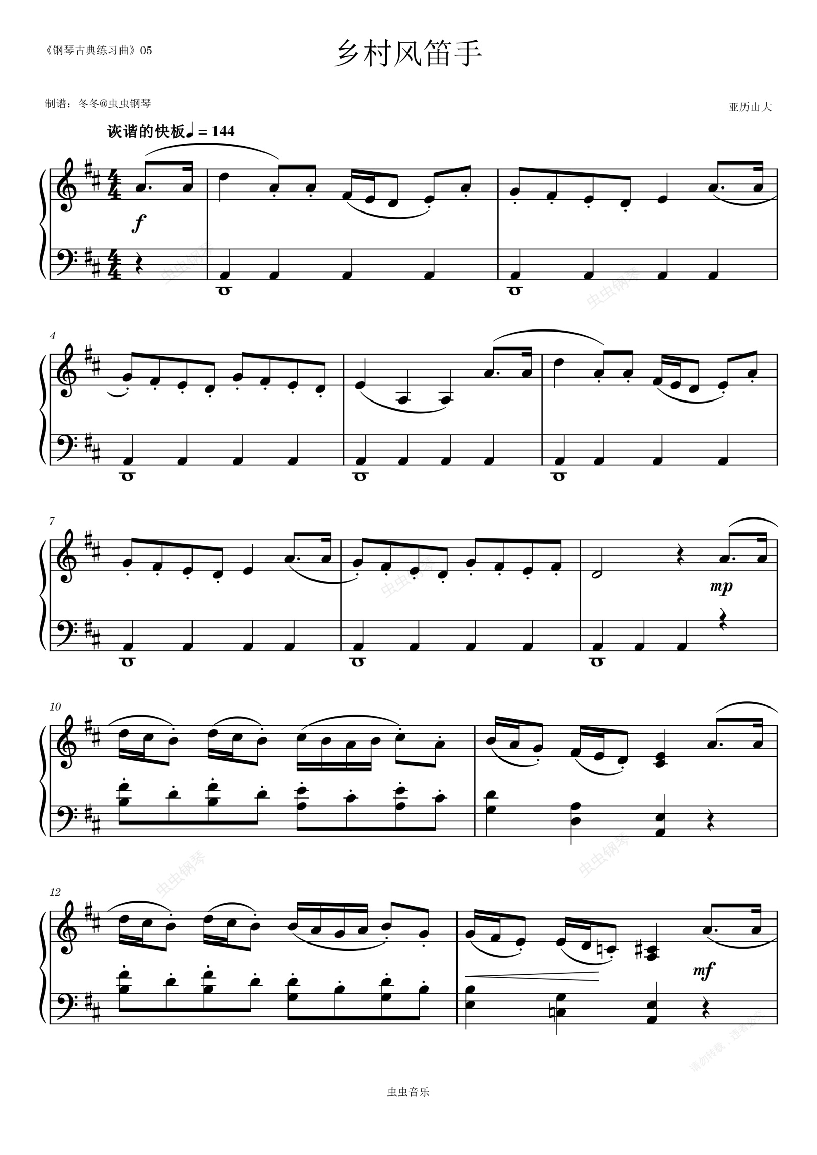 钢琴谱:乡村风笛手