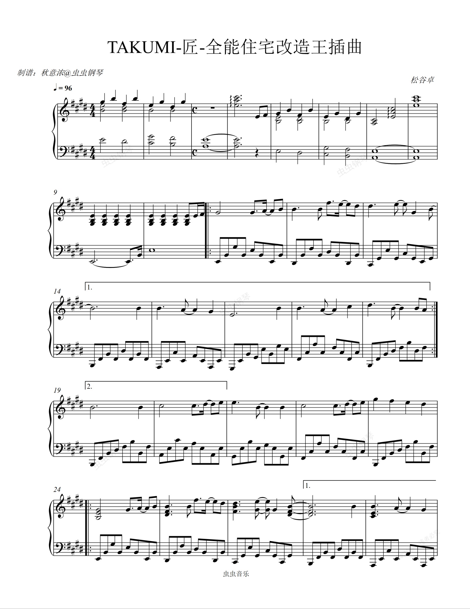 钢琴谱:TAKUMI-匠-松谷卓 全能住宅改造王插曲