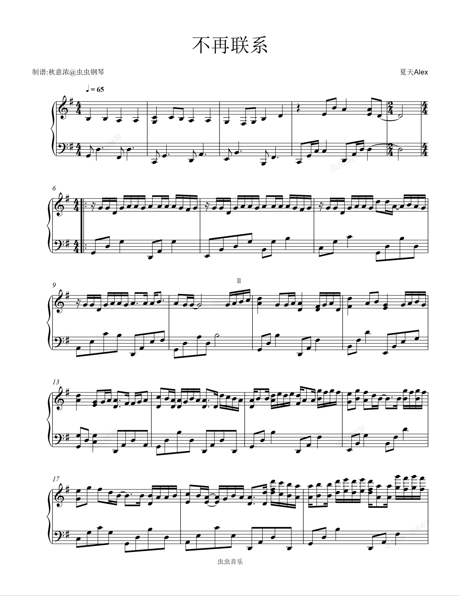钢琴谱:伤感歌曲《不再联系》夏天Alex 我和你不再联系 希望你不要介意
