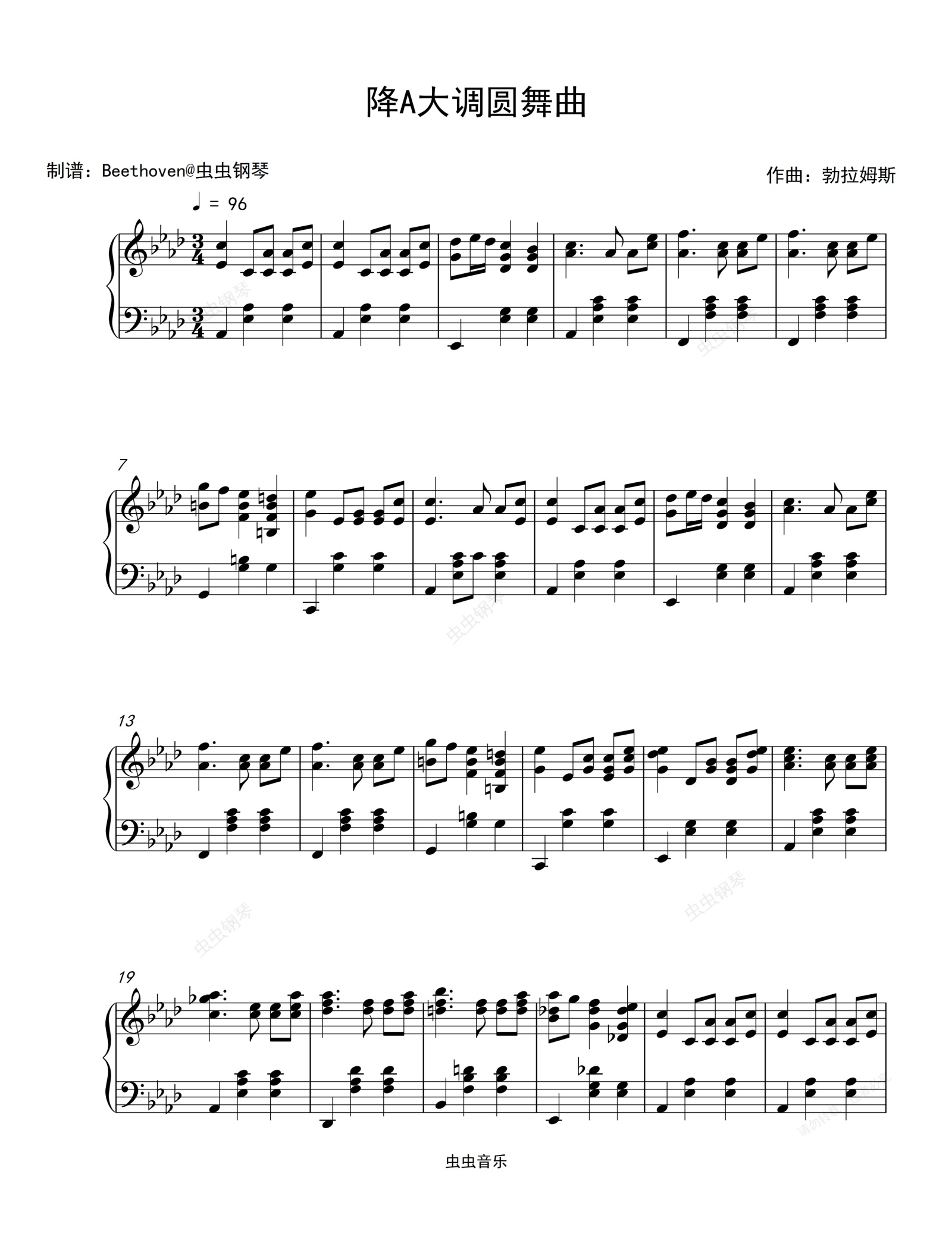 钢琴谱:降A大调圆舞曲-勃拉姆斯