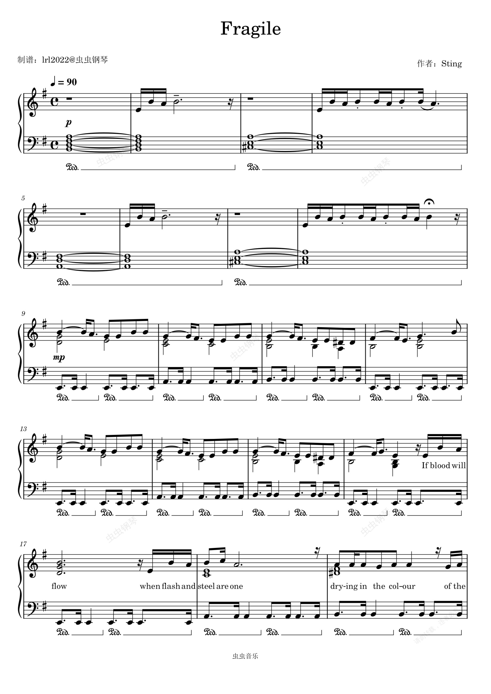 钢琴谱:Fragile - Sting - 钢琴独奏