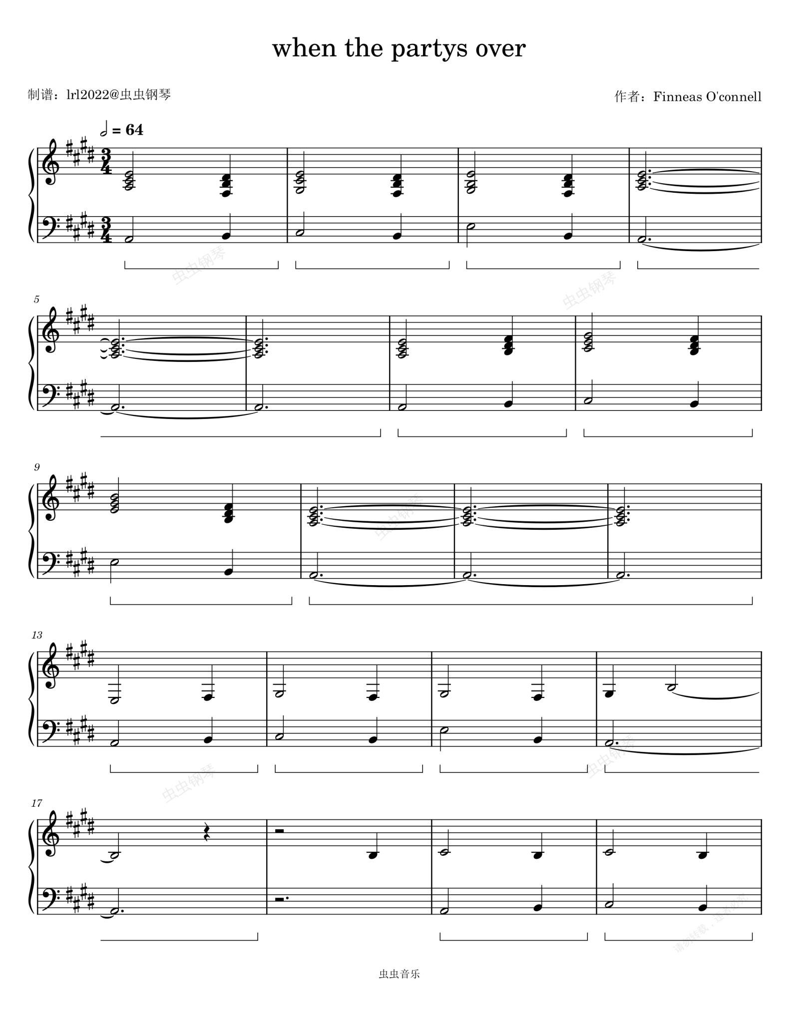 钢琴谱:when the party's over - Billie Eilish - 钢琴独奏