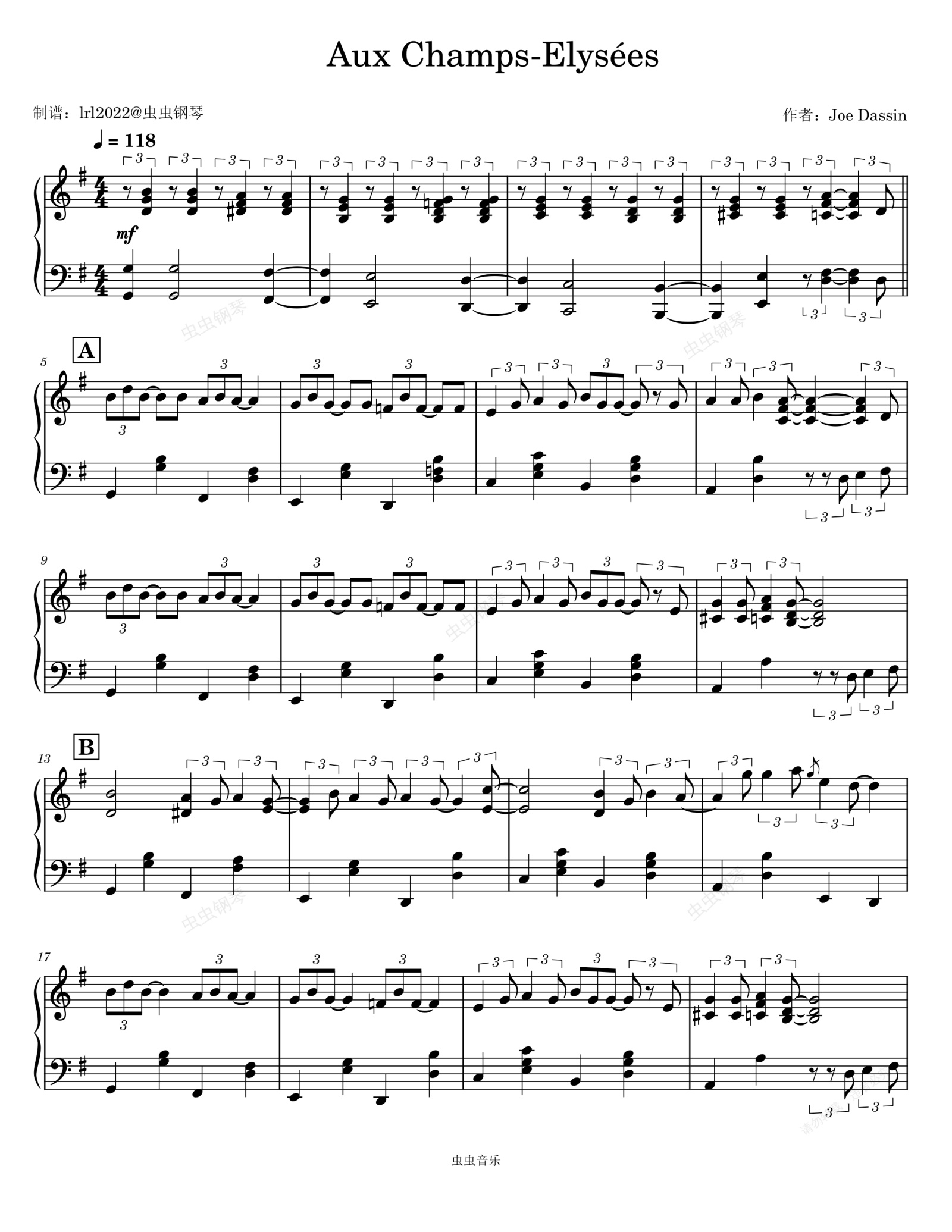 钢琴谱:Aux Champs Elysées - 钢琴独奏