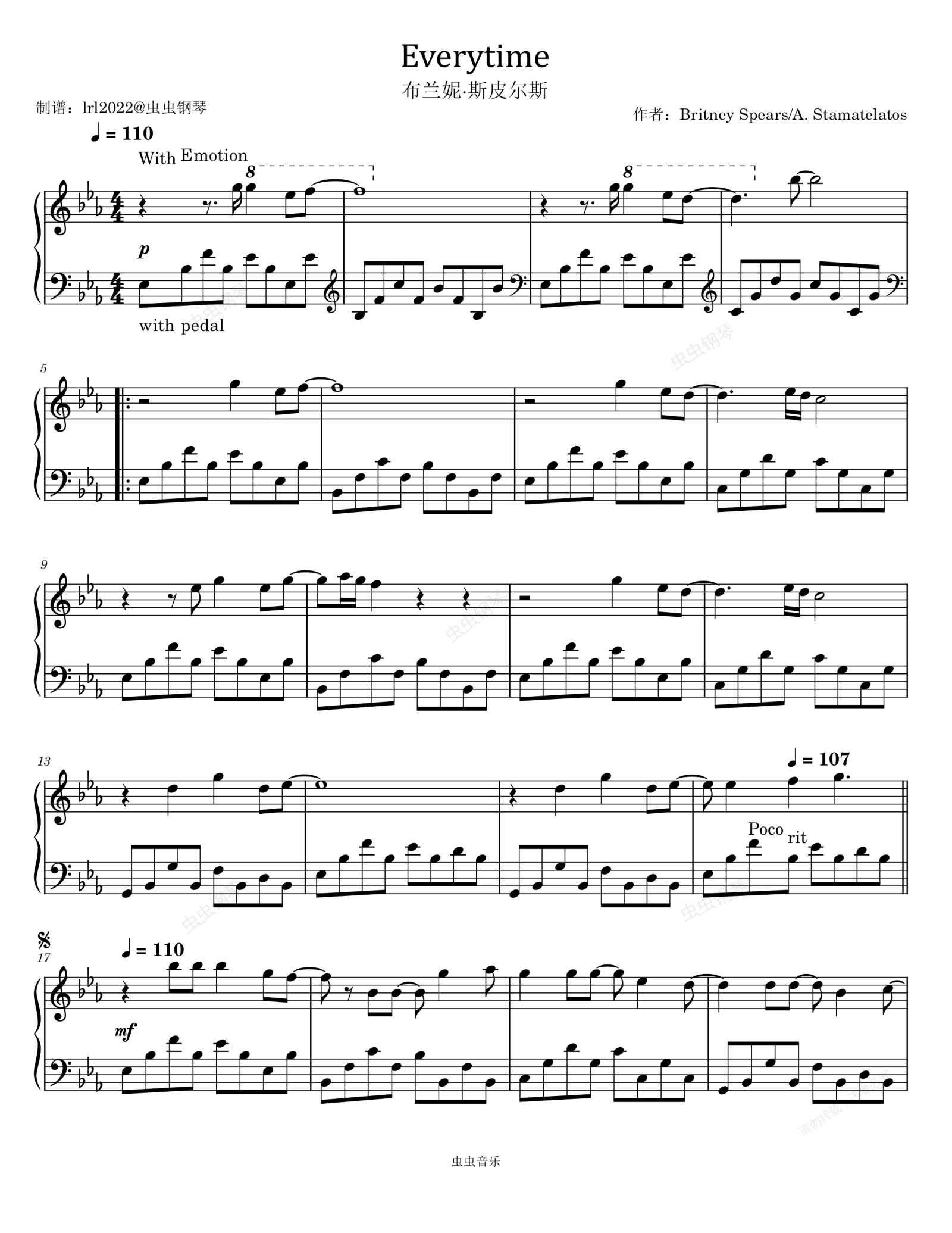 钢琴谱:Everytime - Britney spears - 布兰妮·斯皮尔斯 - 钢琴独奏