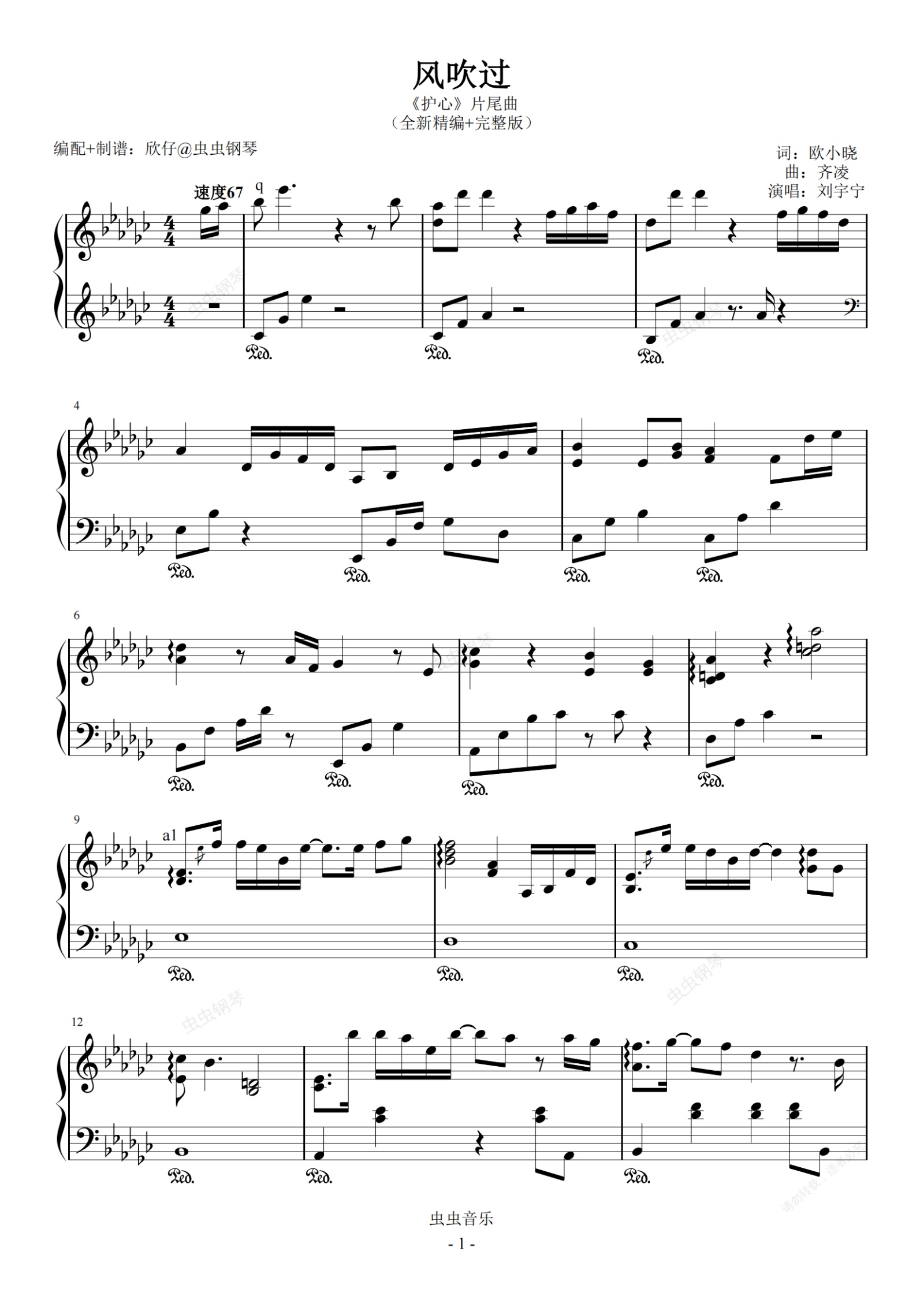 钢琴谱:刘宇宁-降G《风吹过》(《护心》片尾曲)