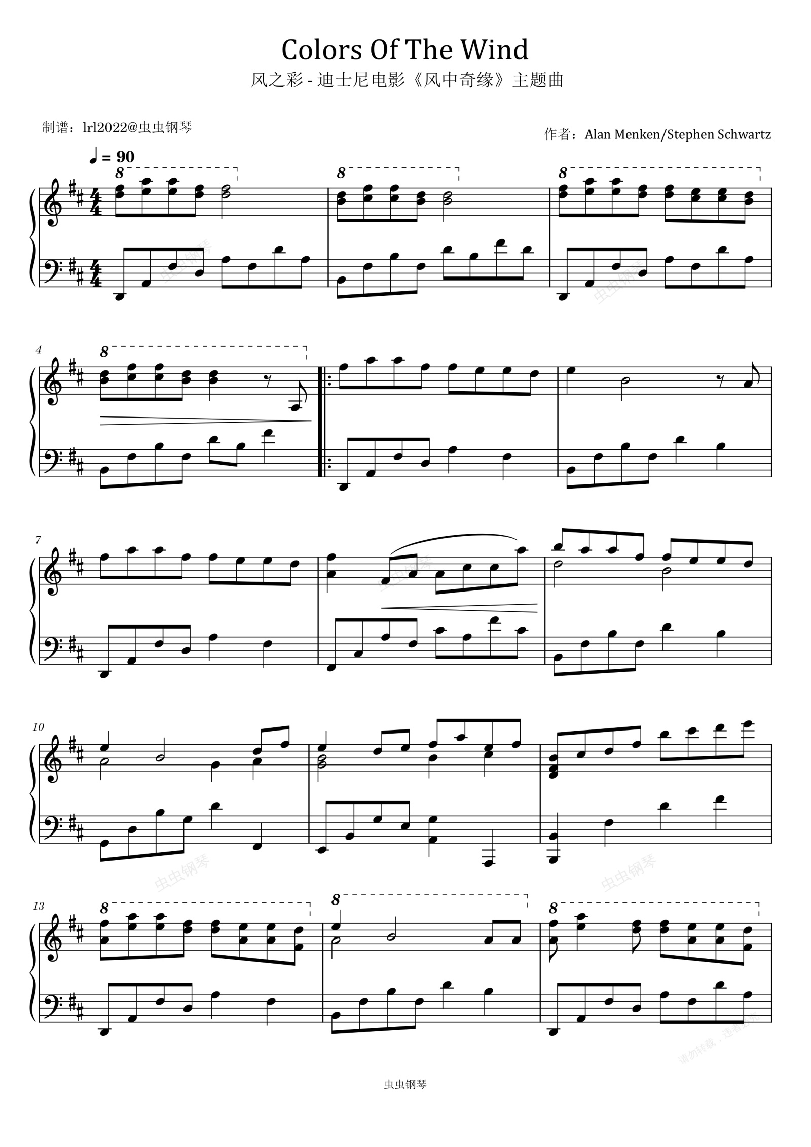 钢琴谱:Colors Of The Wind - 迪士尼电影《风中奇缘》主题曲 - 钢琴独奏 - 风之彩
