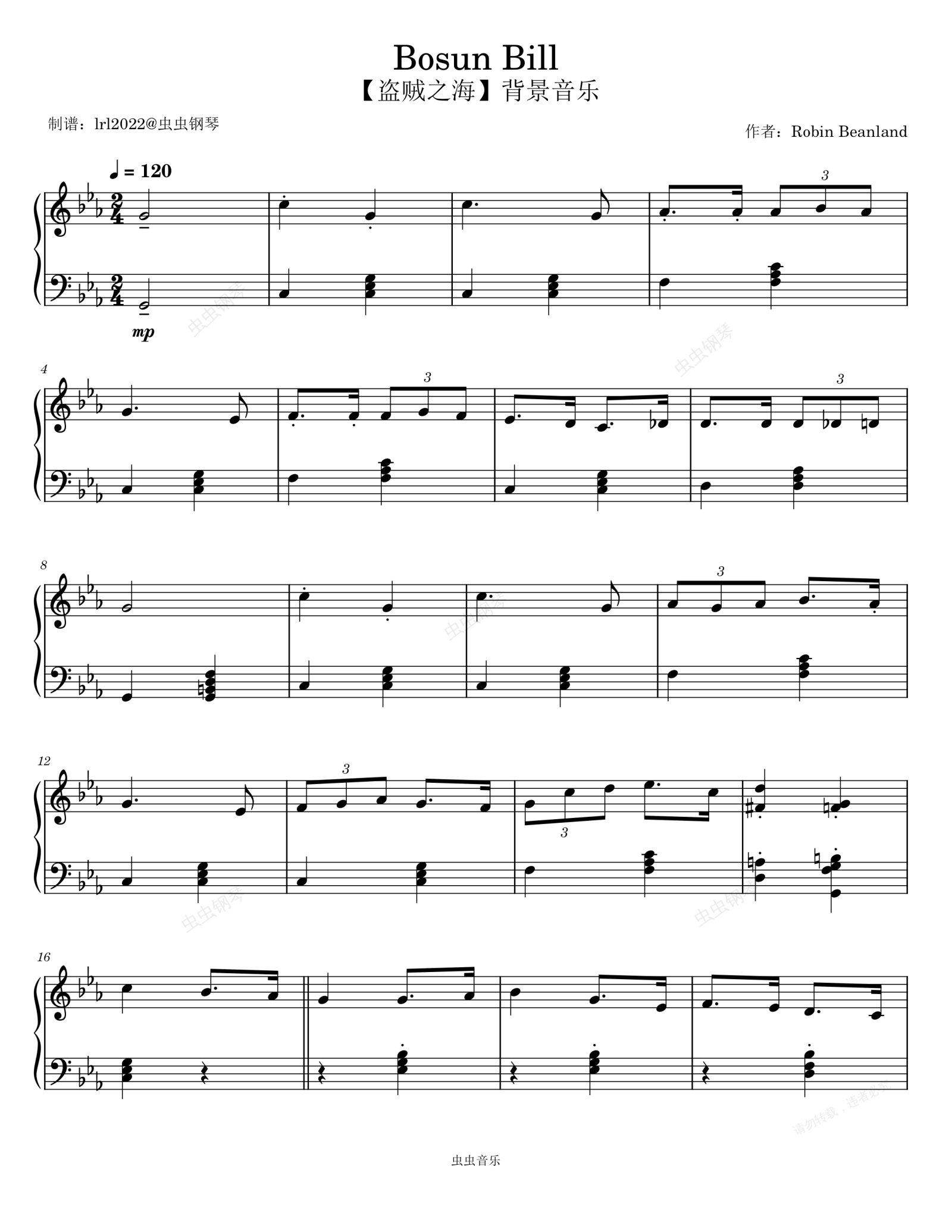 钢琴谱:Bosun Bill - 【盗贼之海】背景音乐 - 钢琴独奏