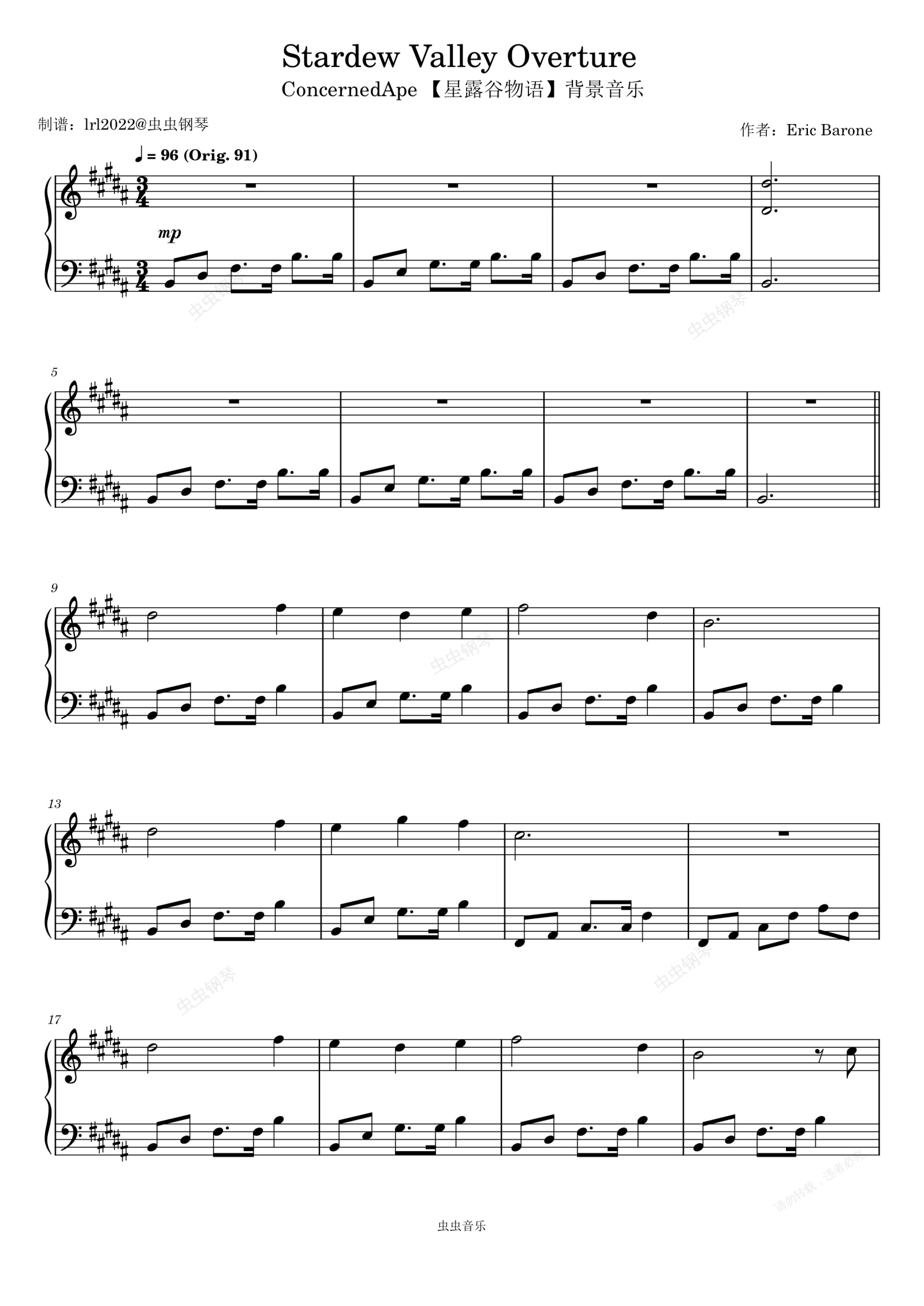 钢琴谱:Stardew Valley Overture - 【星露谷物语】背景音乐 - 钢琴独奏