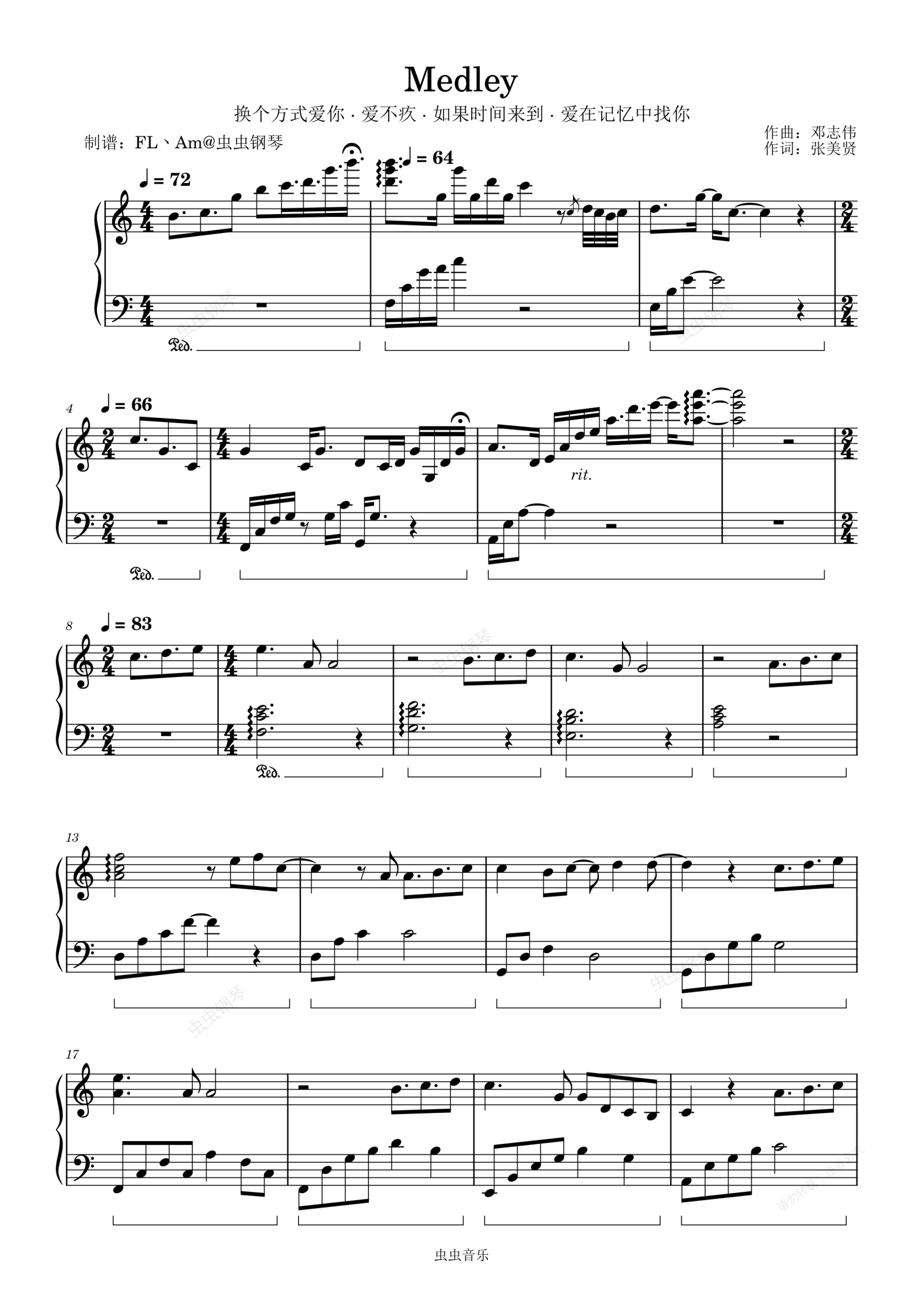钢琴谱:Medley (换个方式爱你+爱不疚+如果时间来到+爱在记忆中找你)