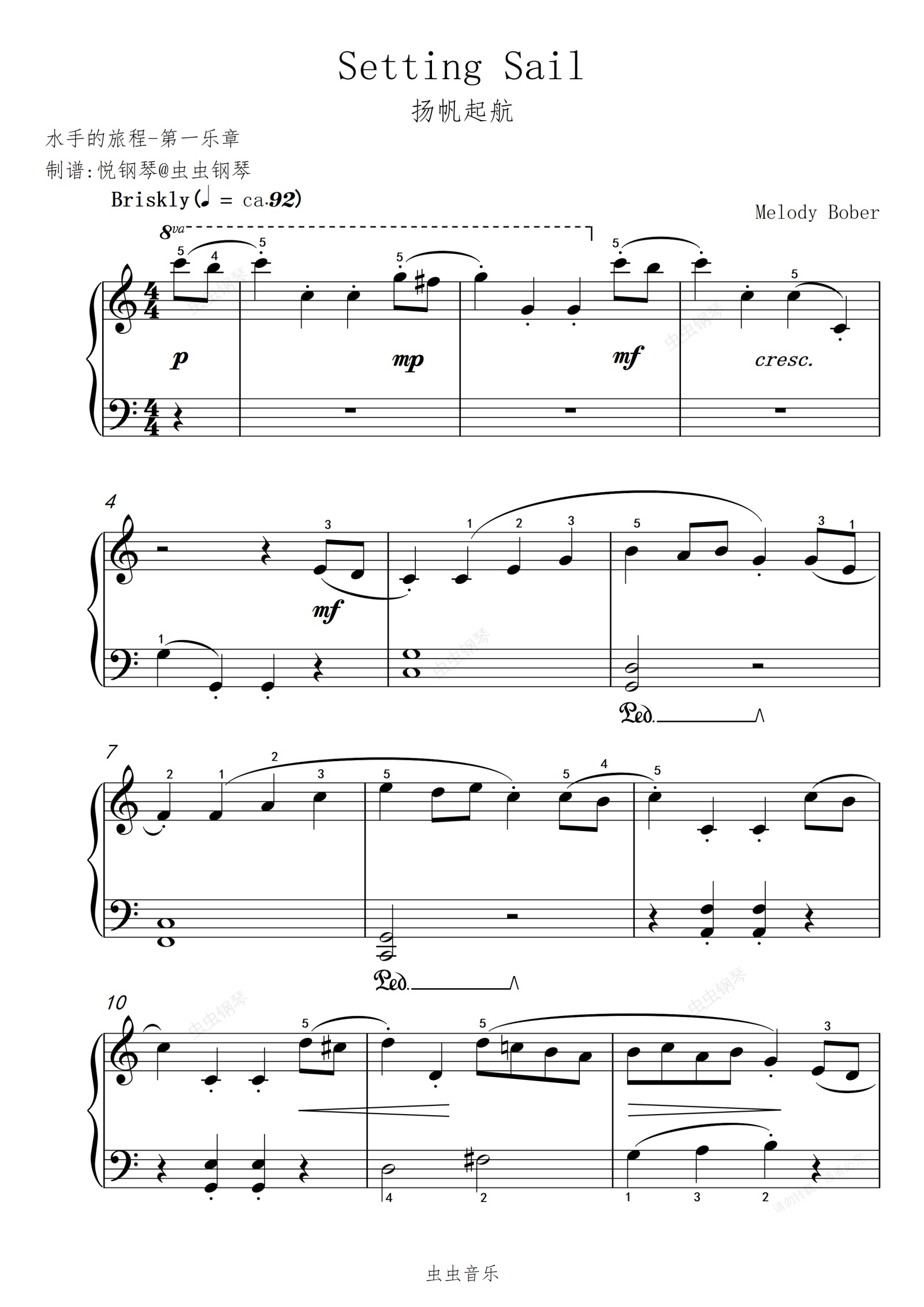 钢琴谱:扬帆起航//Setting Sail-水手的旅程-第一乐章【抒情】