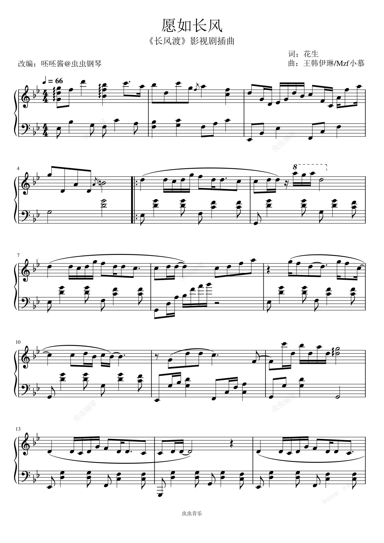 钢琴谱:愿如长风【精编独奏版】《长风渡》影视剧插曲-白敬亭/以冬