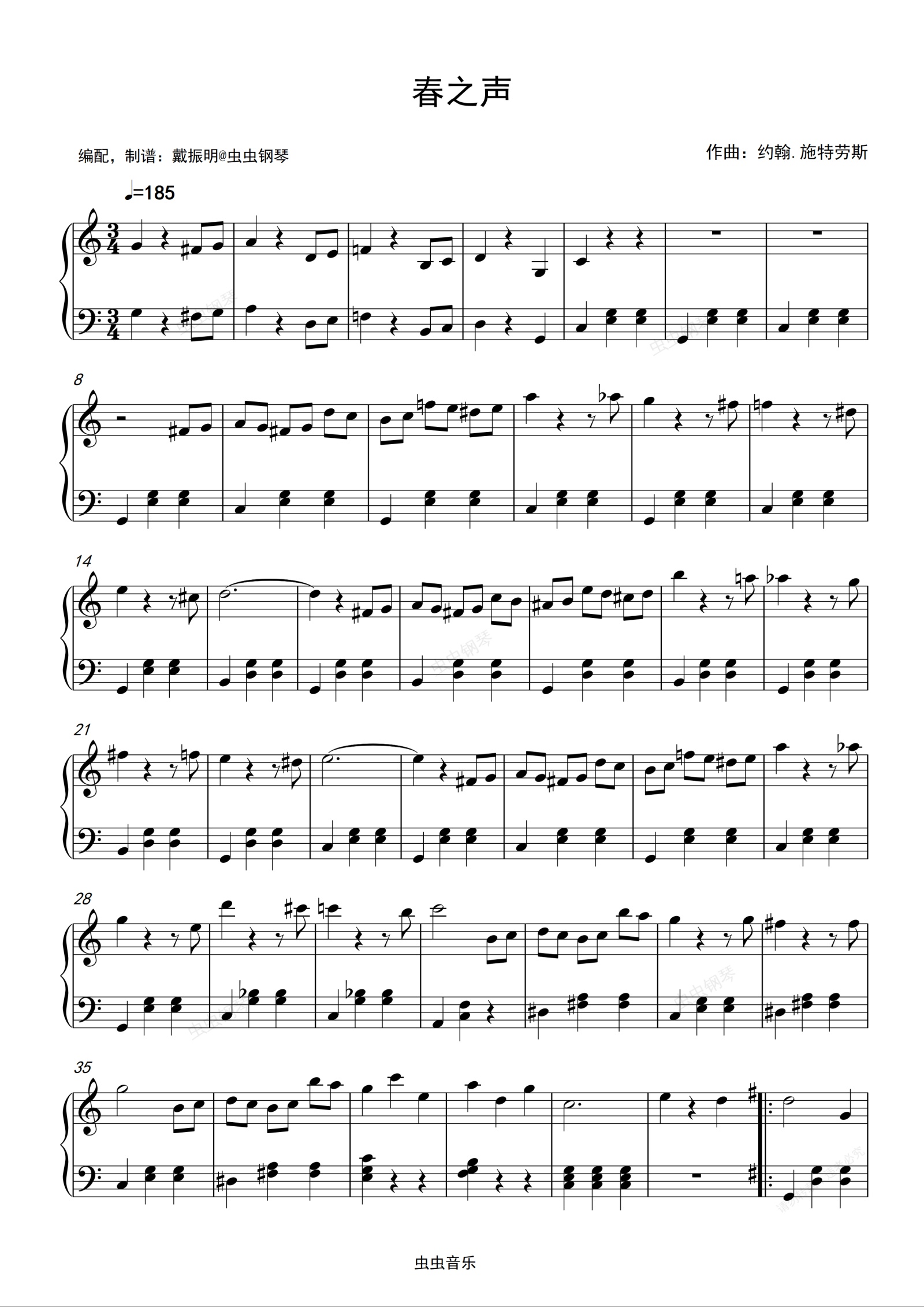 钢琴谱:春之声圆舞曲C调完整版