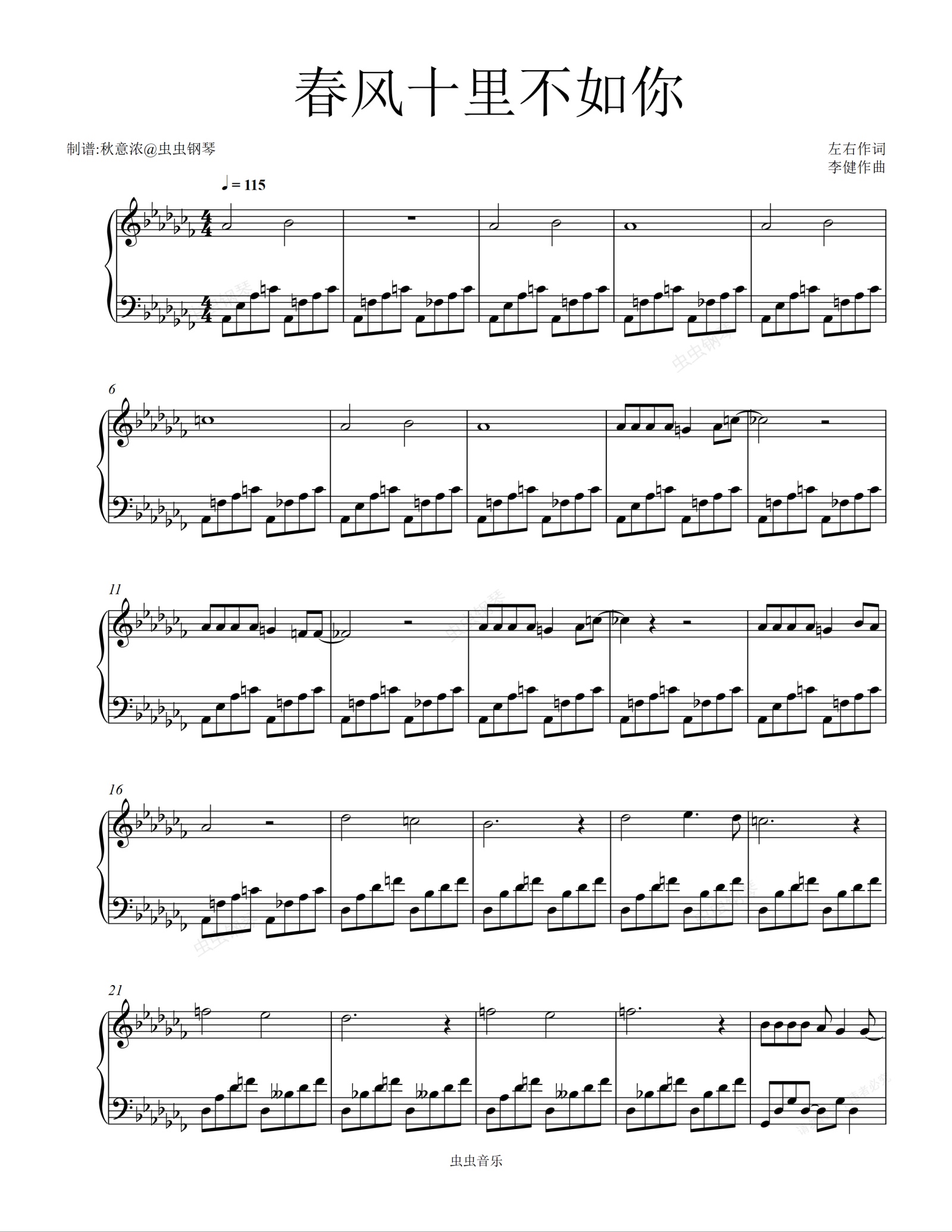 钢琴谱:春风十里不如你-春风十里不如你主题曲