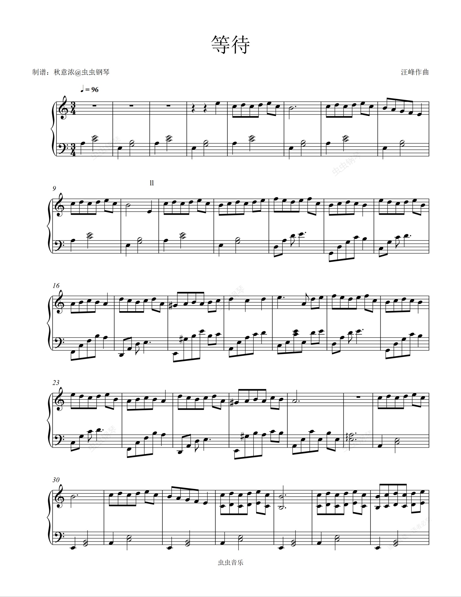 钢琴谱:等待--我是歌手-黄绮珊