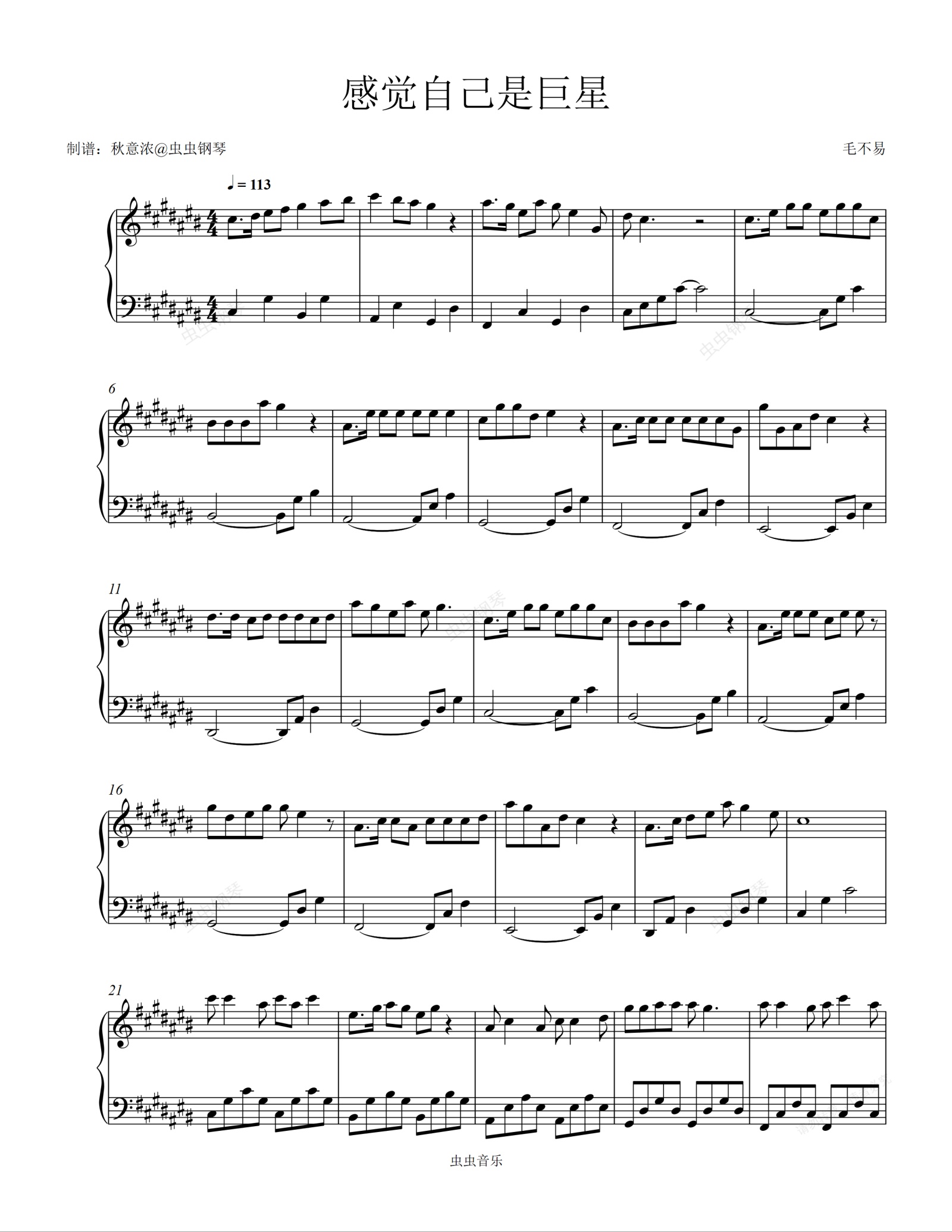 钢琴谱:感觉自己是巨星-卧底巨星推广曲