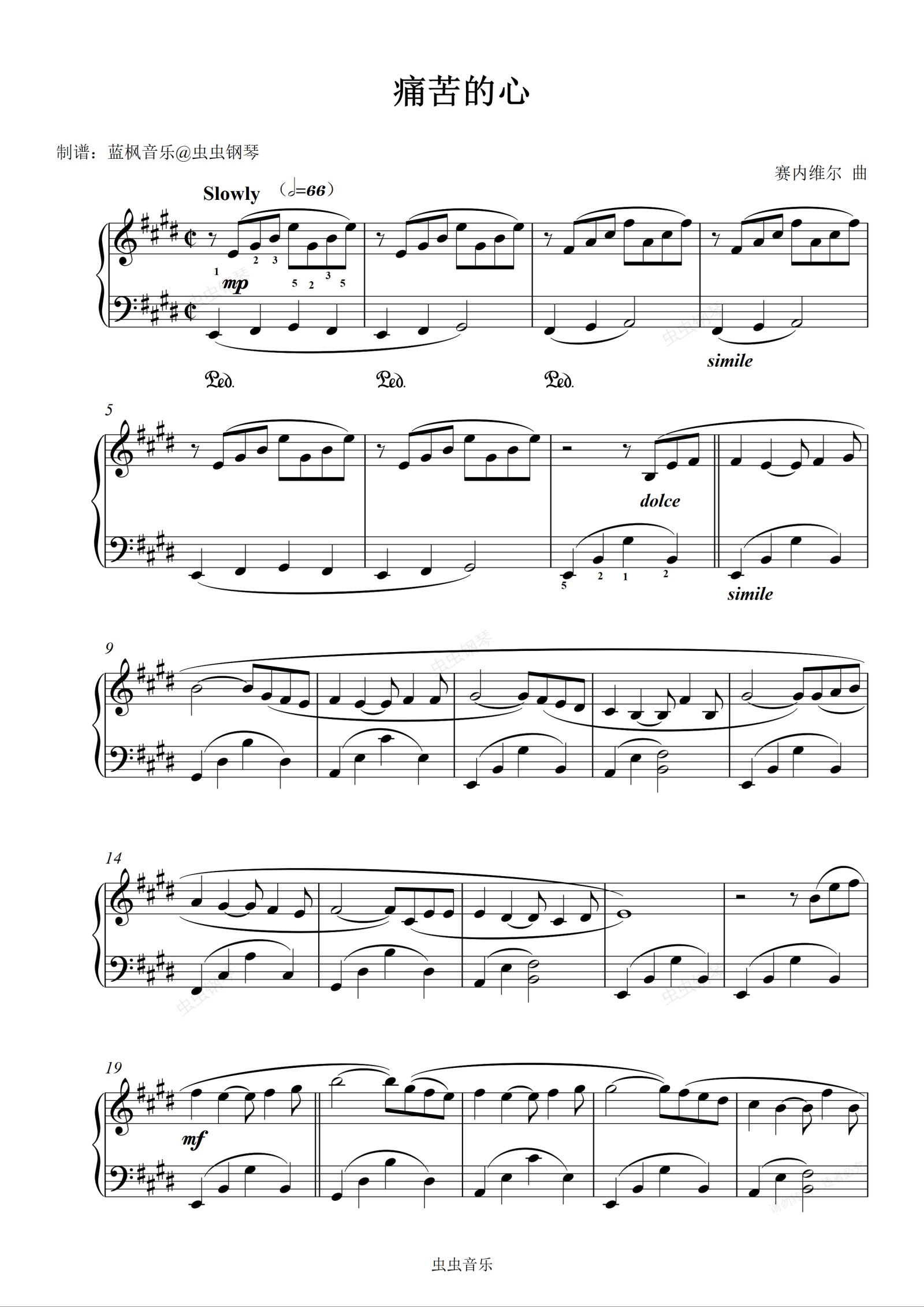 钢琴谱:36痛苦的心