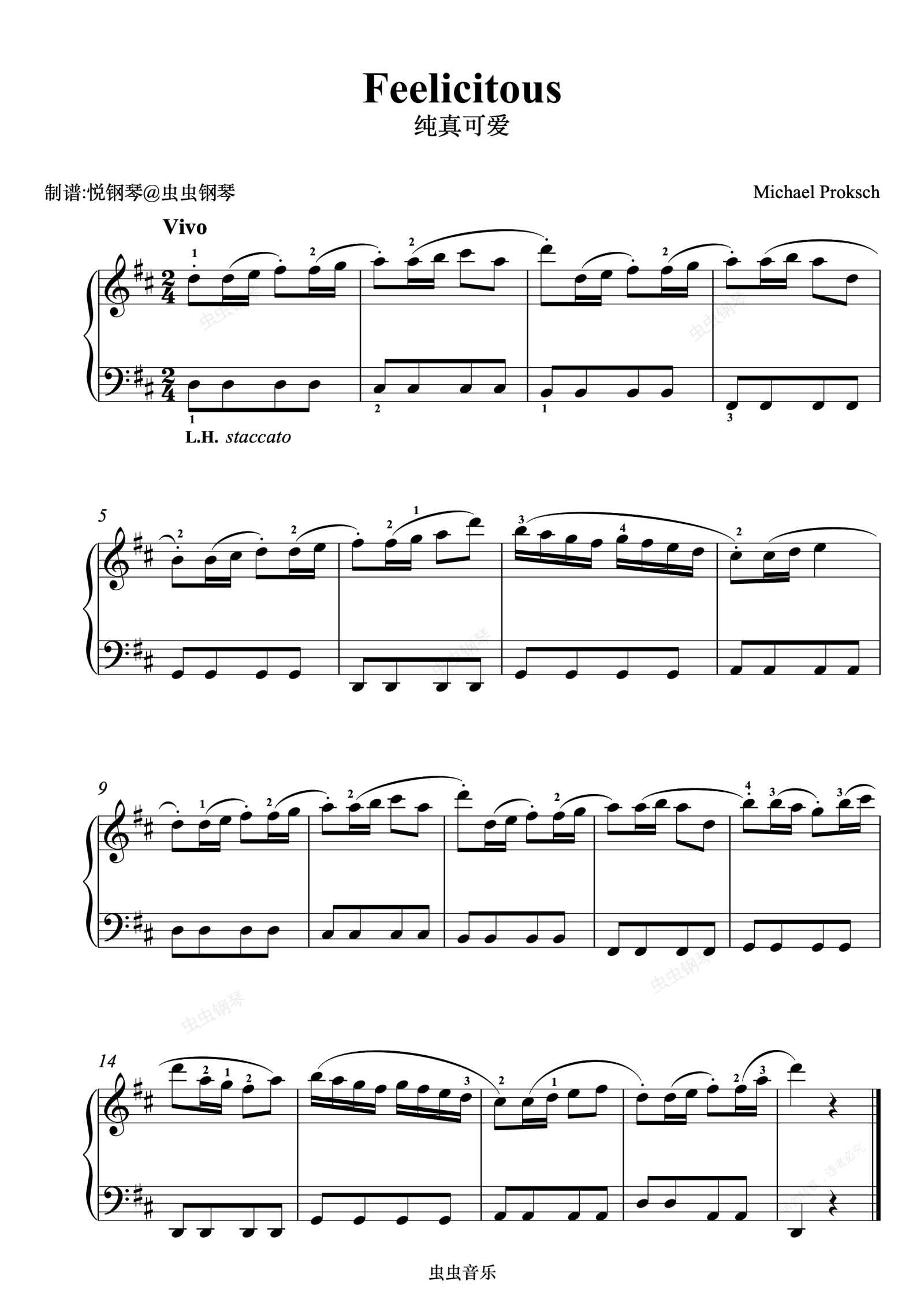 钢琴谱:纯真可爱//Feelicitous-免费乐谱【轻松惬意】