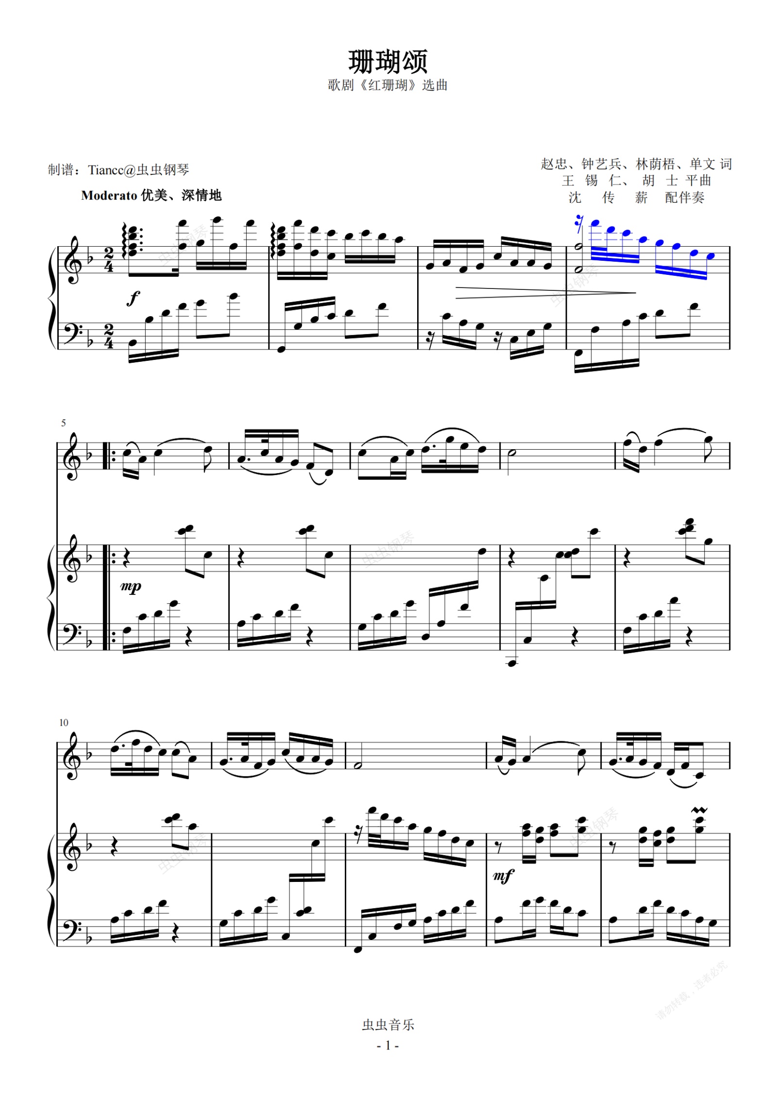 钢琴谱:《珊瑚颂》声乐伴奏谱