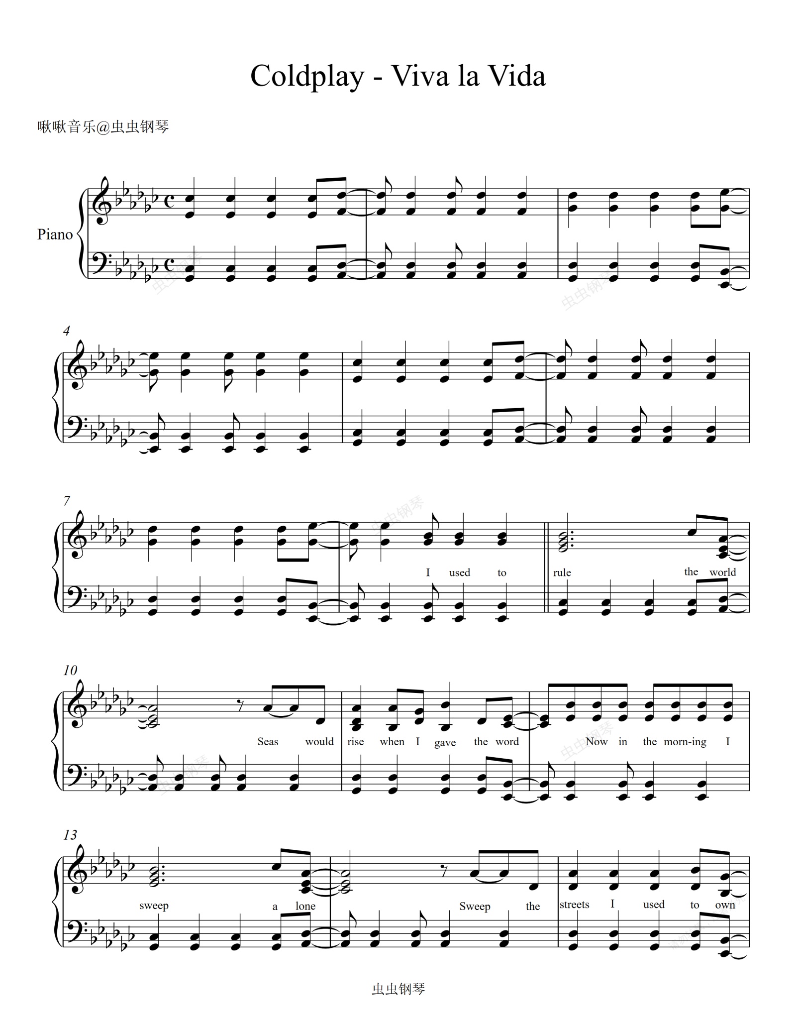 钢琴谱:生命万岁 Viva La Vida