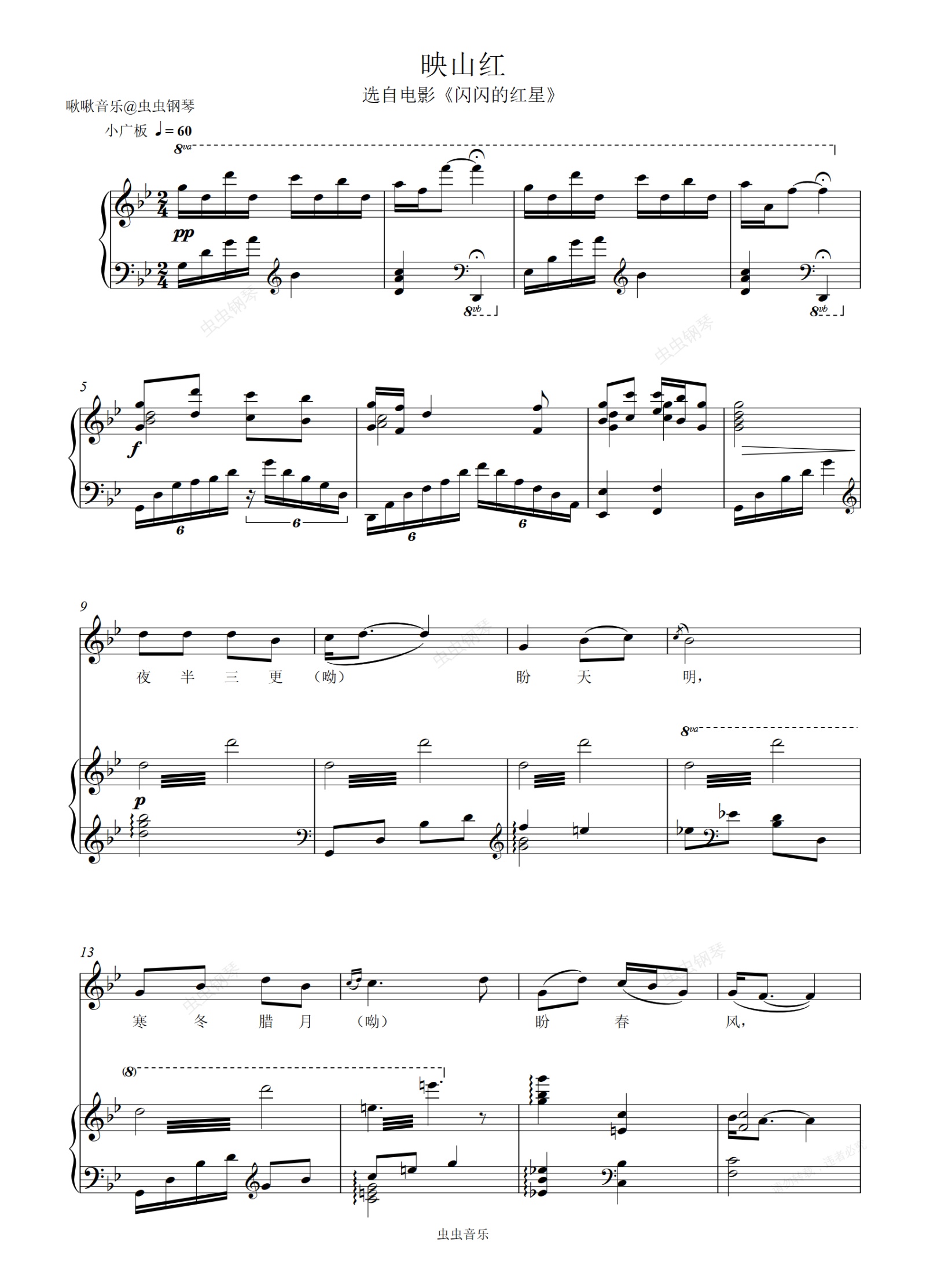 钢琴谱:映山红 钢琴弹唱谱-选自《闪闪的红星》