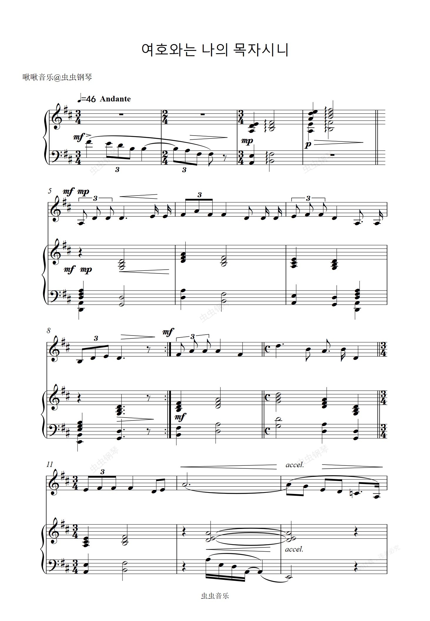 钢琴谱:耶和华是我的牧人-D调钢琴伴奏谱