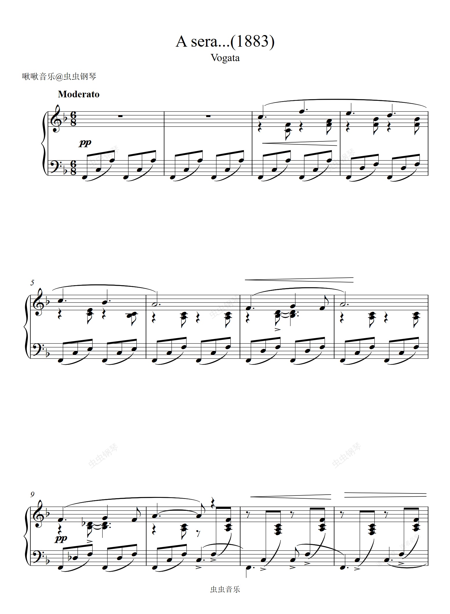 钢琴谱:A sera 在夜晚 (Tosti) - 钢琴弹唱伴奏谱