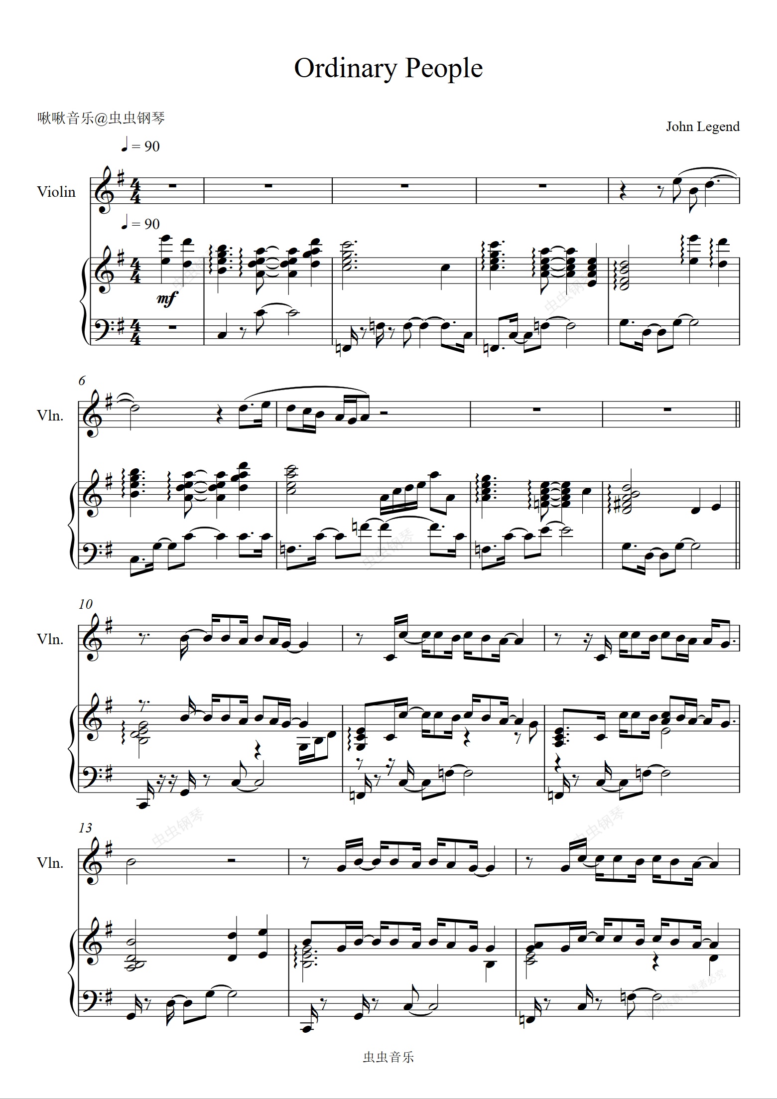 钢琴谱:Ordinary People 提琴版钢琴伴奏谱-G调