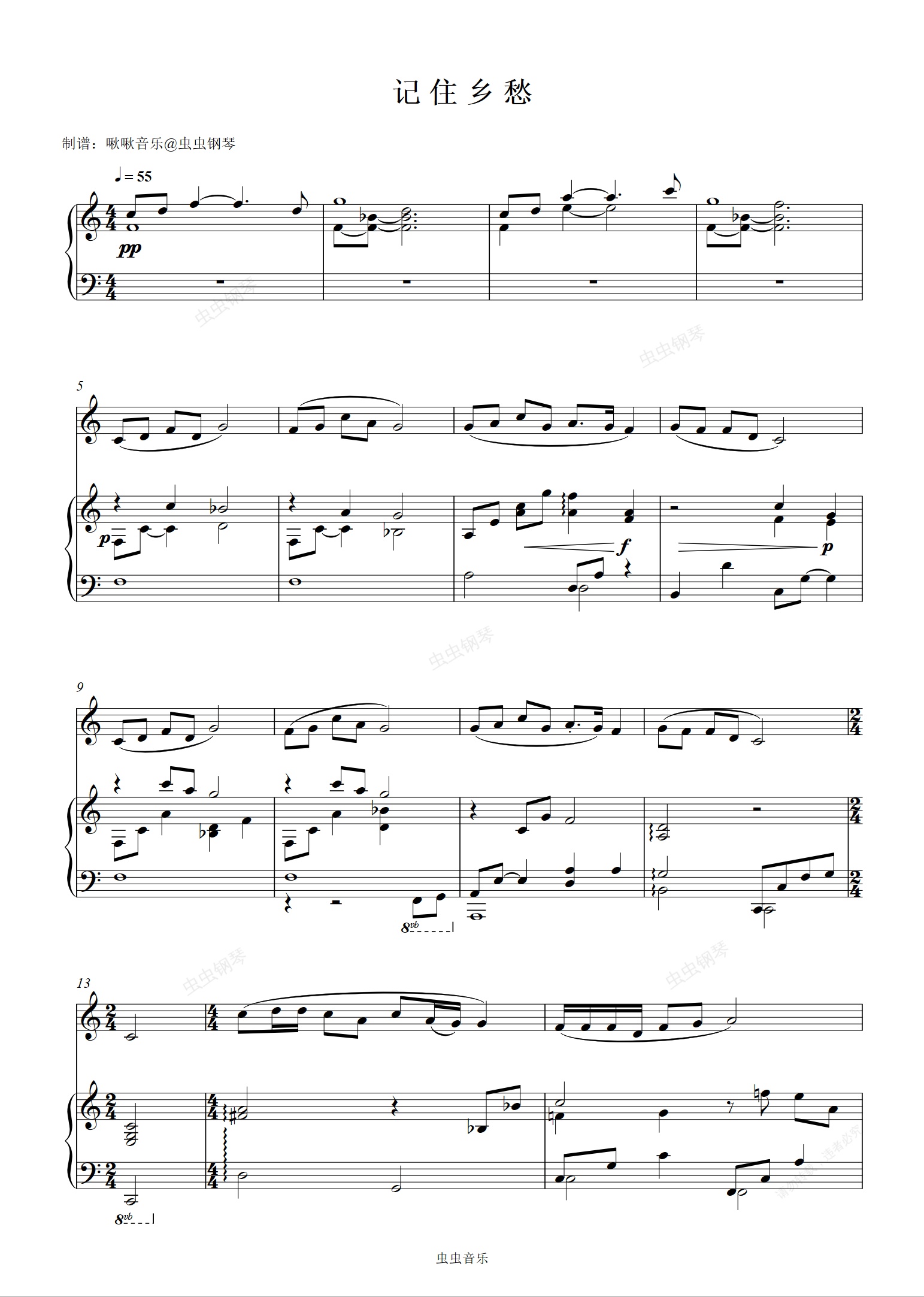 钢琴谱:记住乡愁 钢琴弹唱伴奏谱