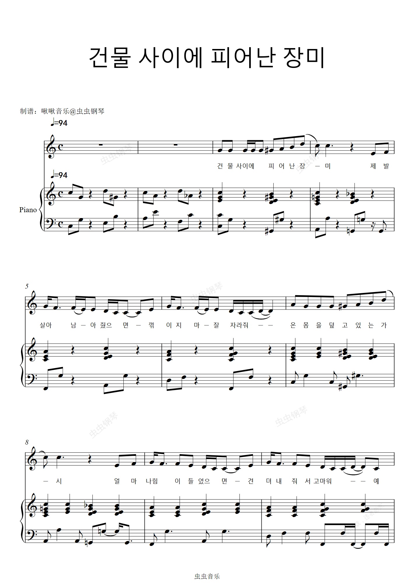 钢琴谱:Rose Blossom 楼宇间盛开的玫瑰 (건물 사이에 피어난 장미) 钢琴弹唱伴奏谱