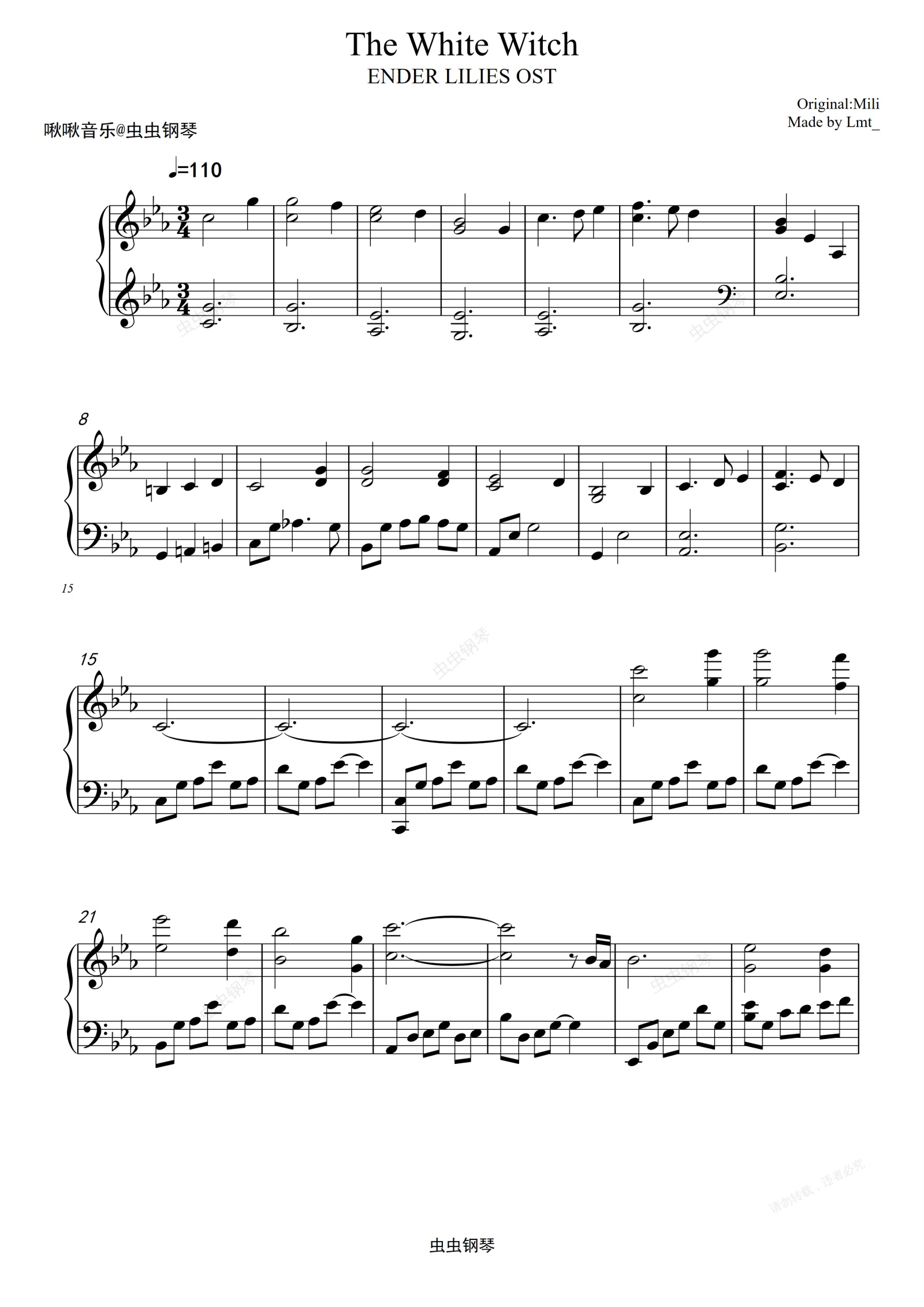 钢琴谱:终焉的莉莉丝 ENDER LILIES 《The White Witch》