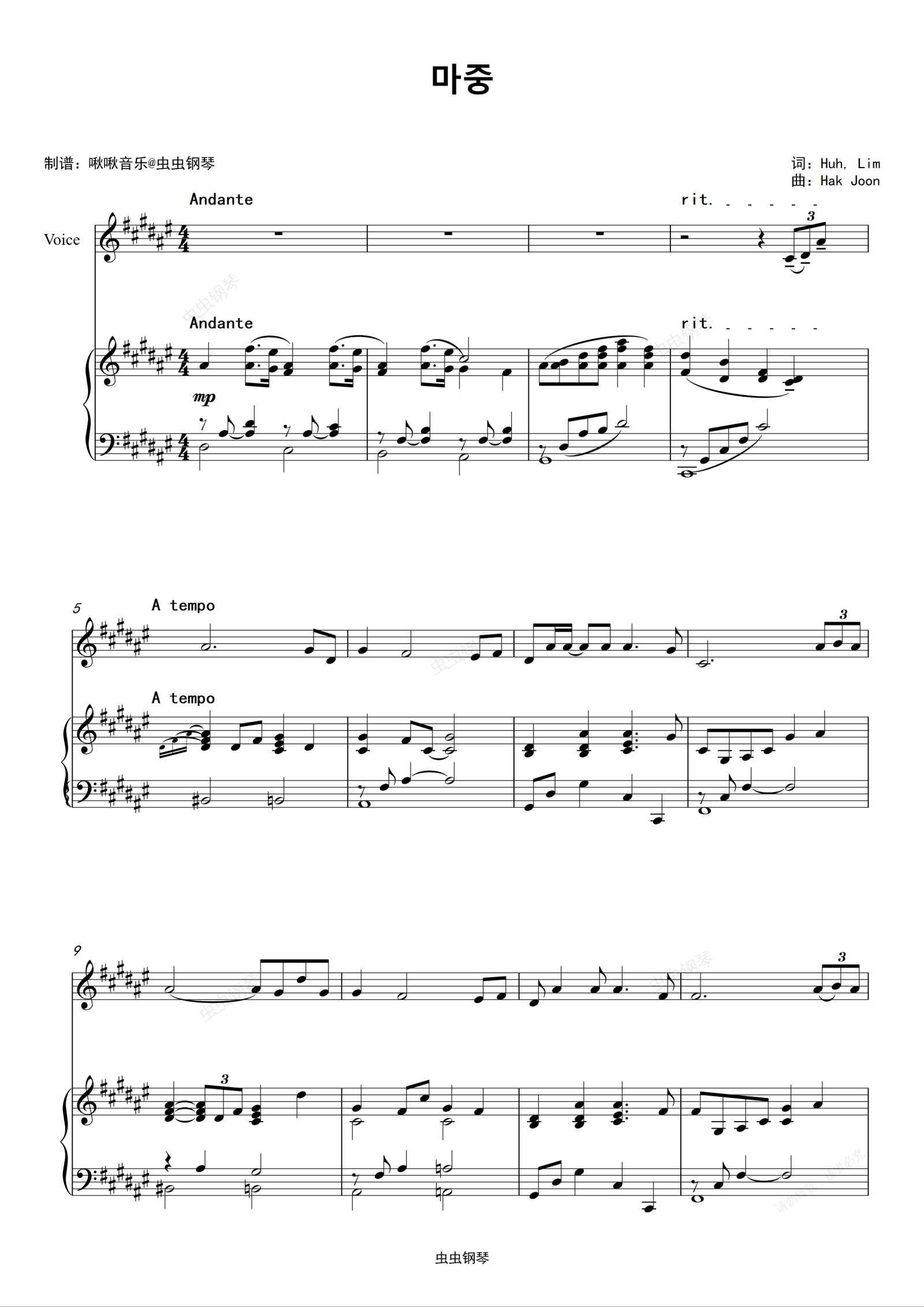 钢琴谱:迎接(마중)韩国艺术歌曲 钢琴弹唱伴奏谱