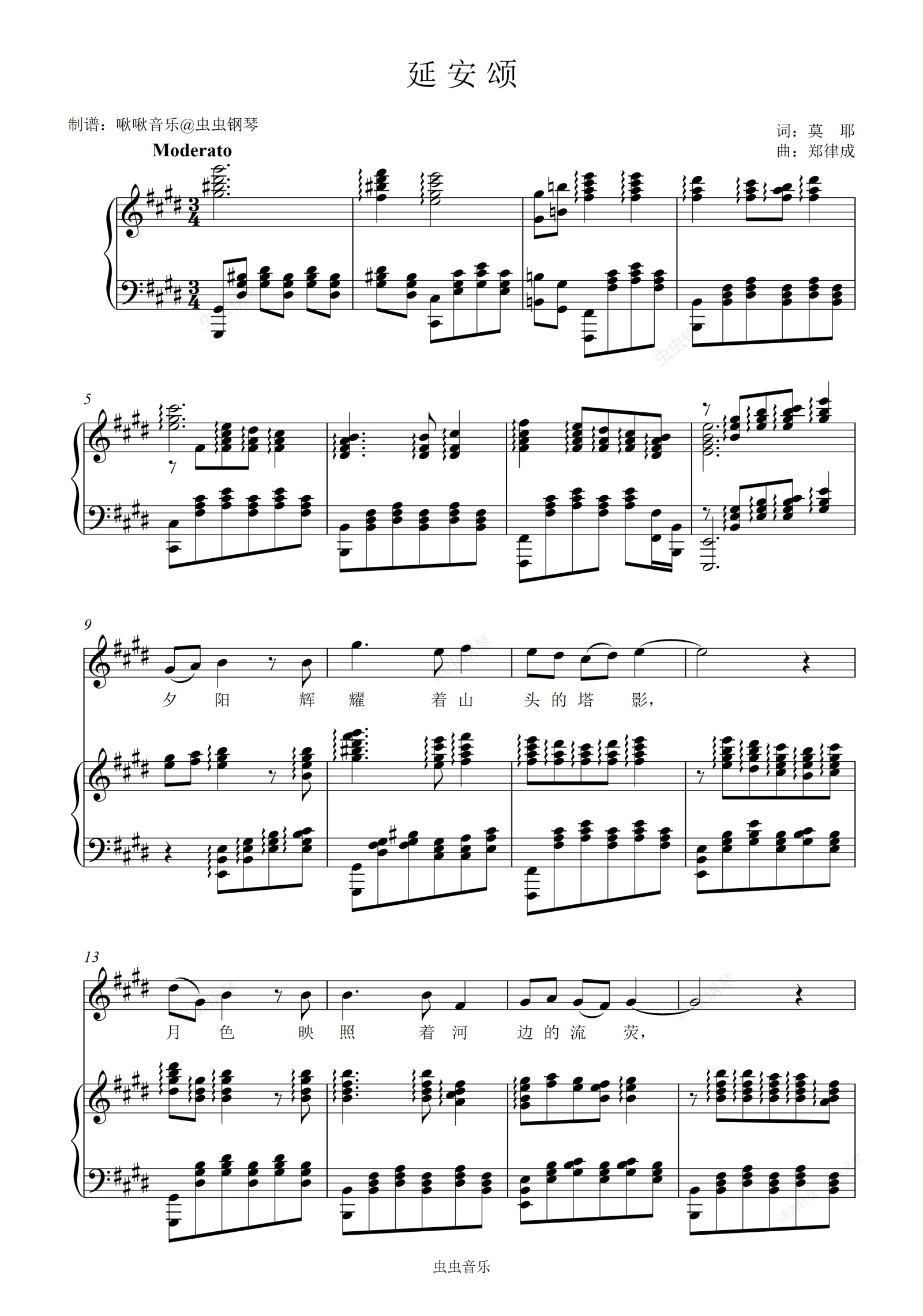 钢琴谱:延安颂 钢琴弹唱伴奏谱