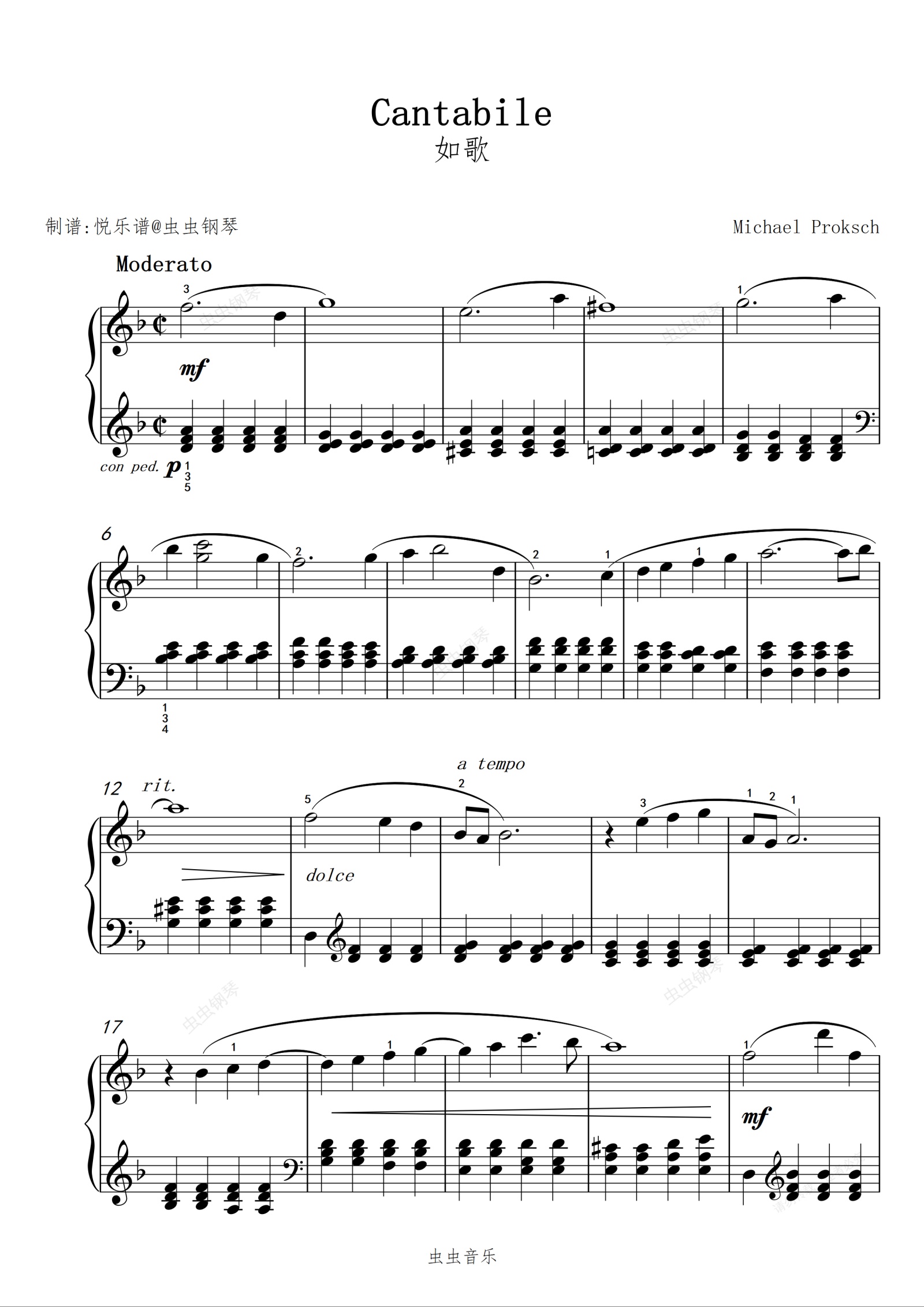 钢琴谱:如歌//Cantabile【治愈-唯美】