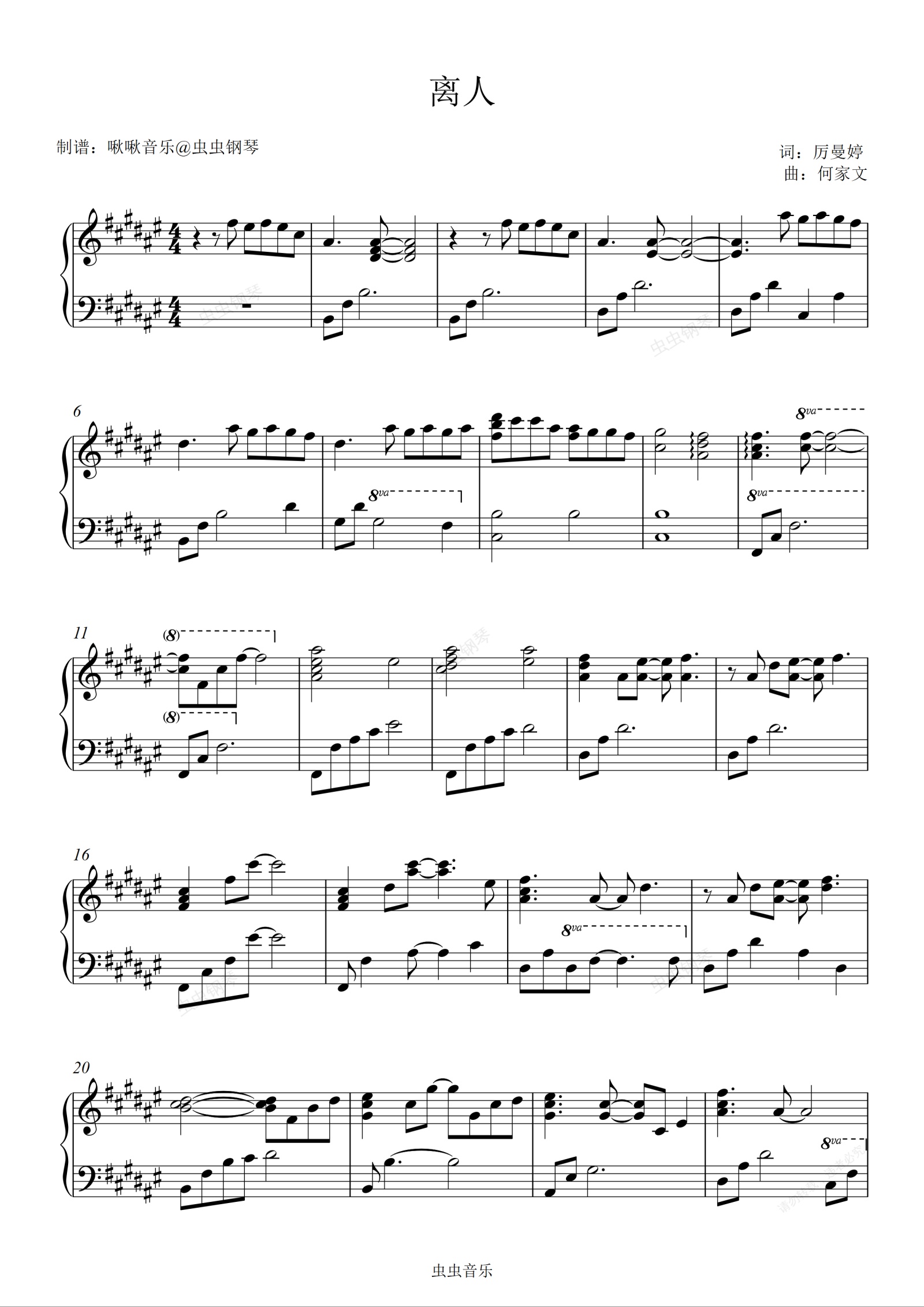钢琴谱:离人 动听钢琴弹唱伴奏谱