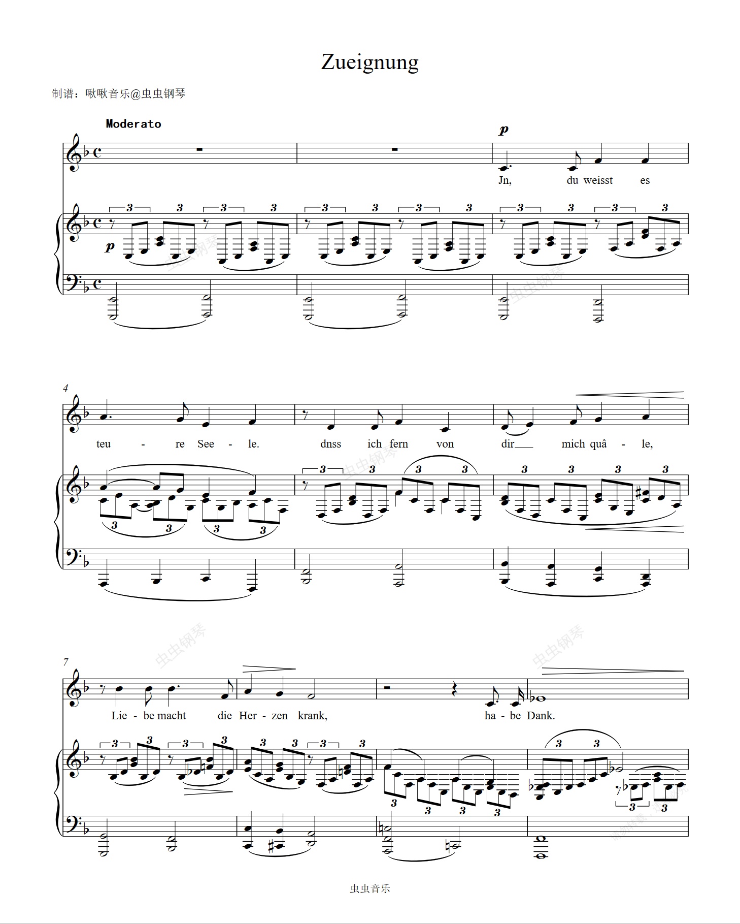 钢琴谱:赠献 Zueignung 钢琴弹唱伴奏谱