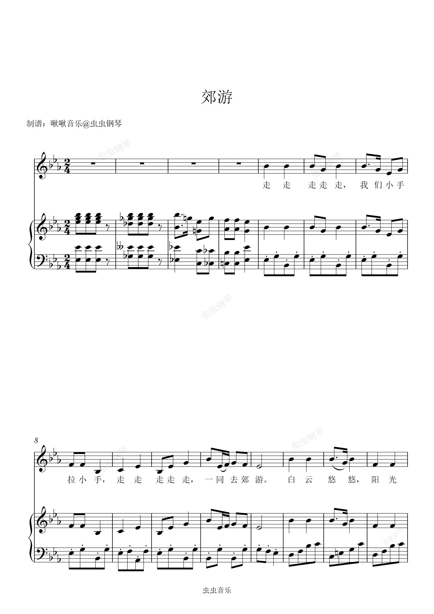 钢琴谱:郊游 儿歌 钢琴弹唱伴奏谱