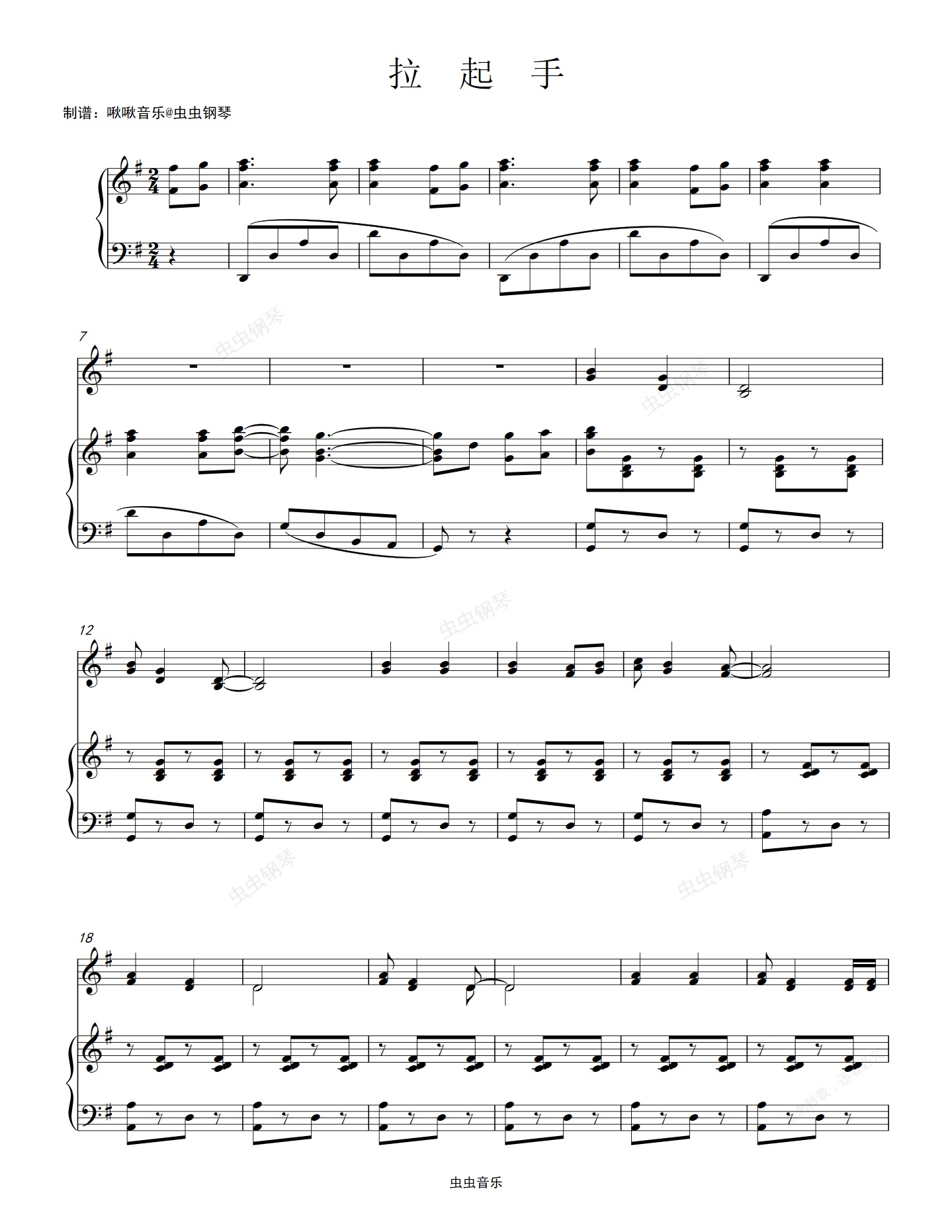 钢琴谱:拉起手 儿歌 钢琴弹唱伴奏谱