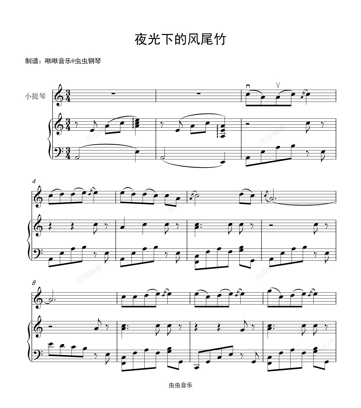 钢琴谱:月光下的风尾竹 小提琴+钢琴伴奏谱