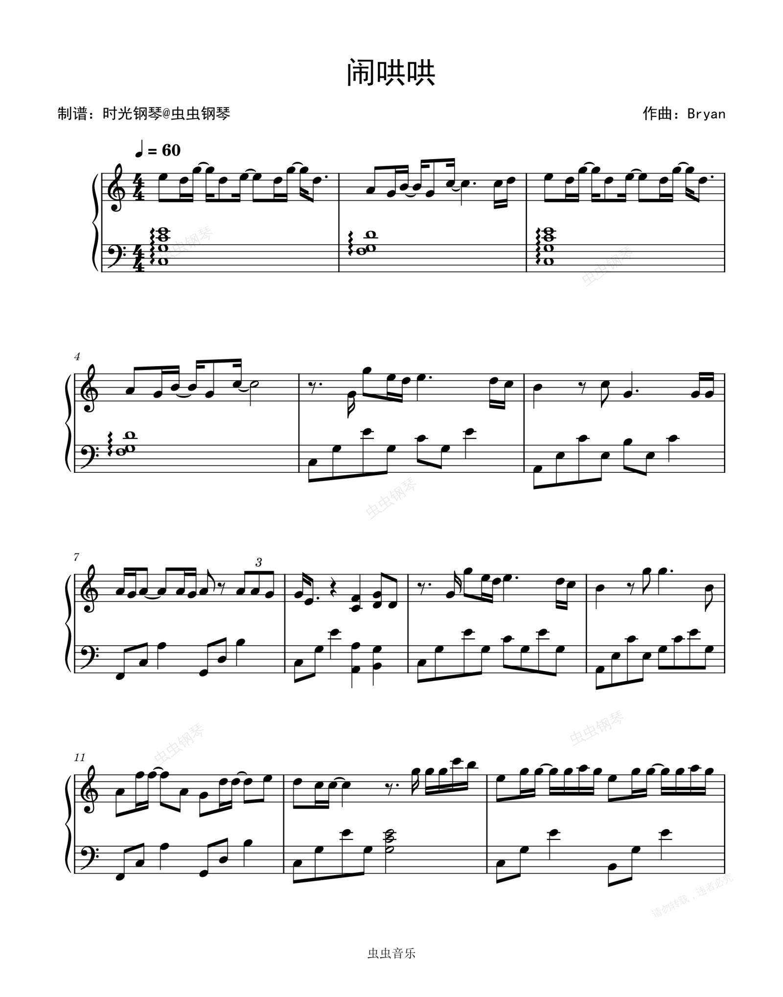 钢琴谱:闹哄哄 郁可唯 简单好听