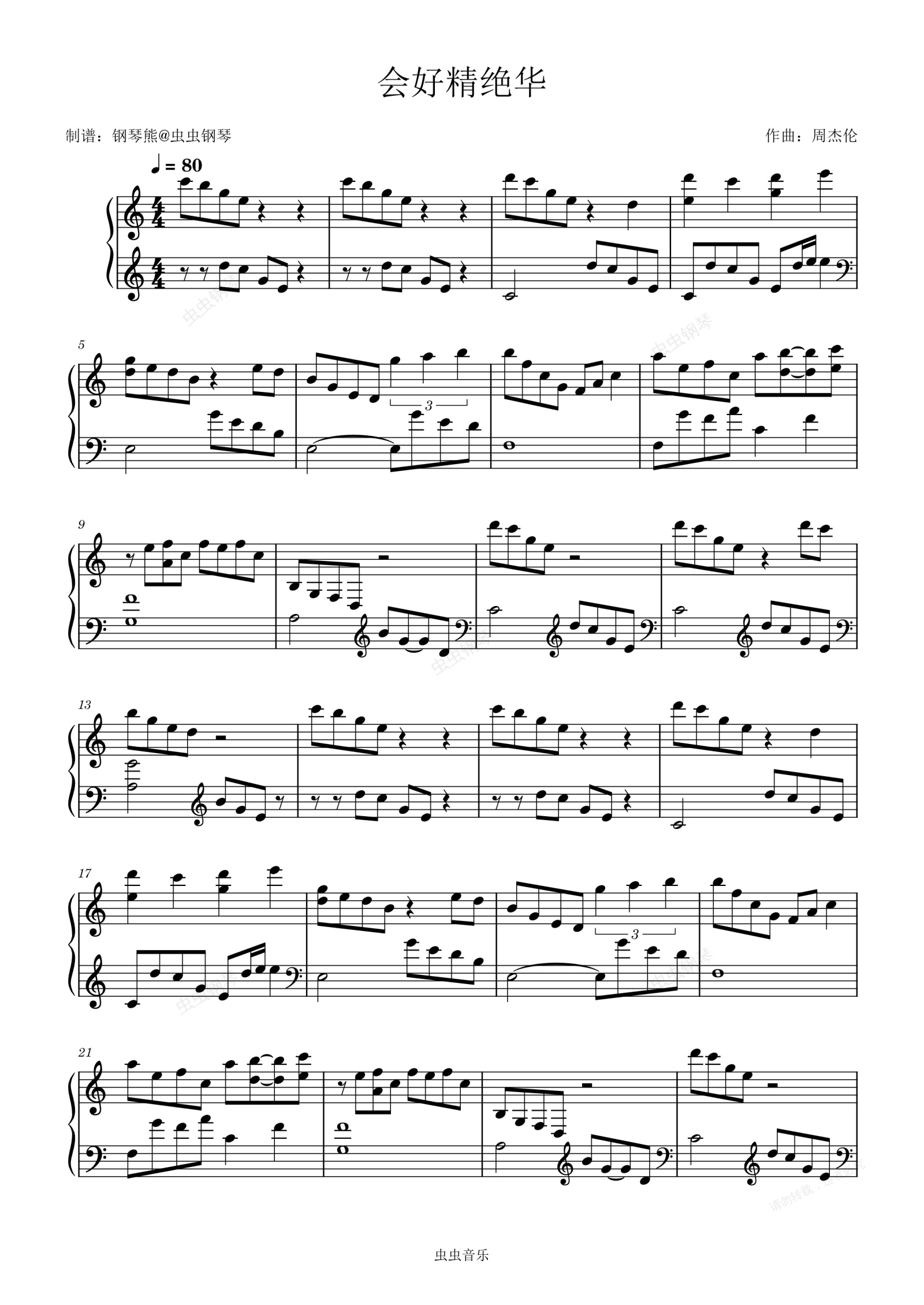 钢琴谱:会好精绝华 周杰伦版抒情曲