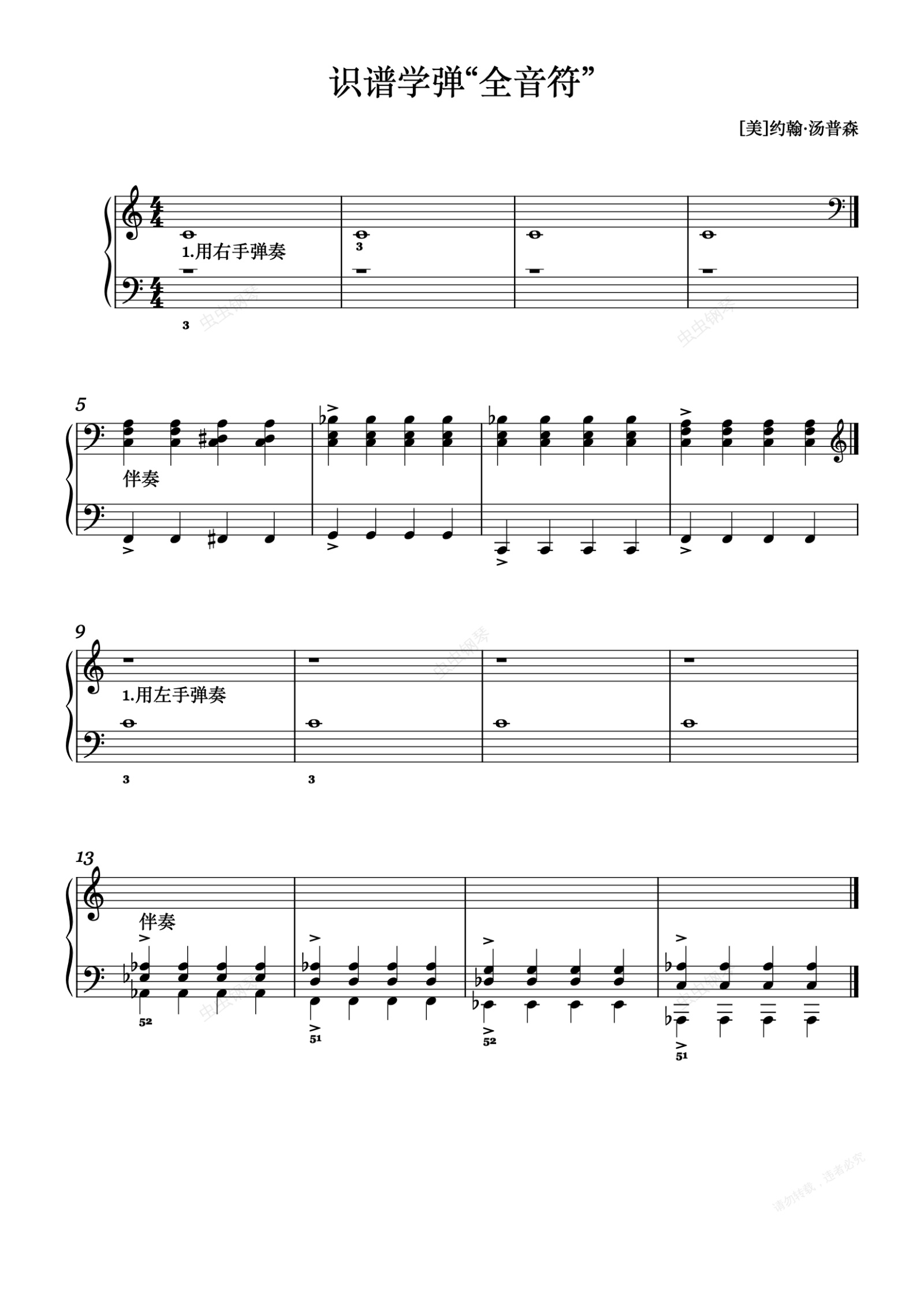 钢琴谱:73.识谱学弹“全音符”